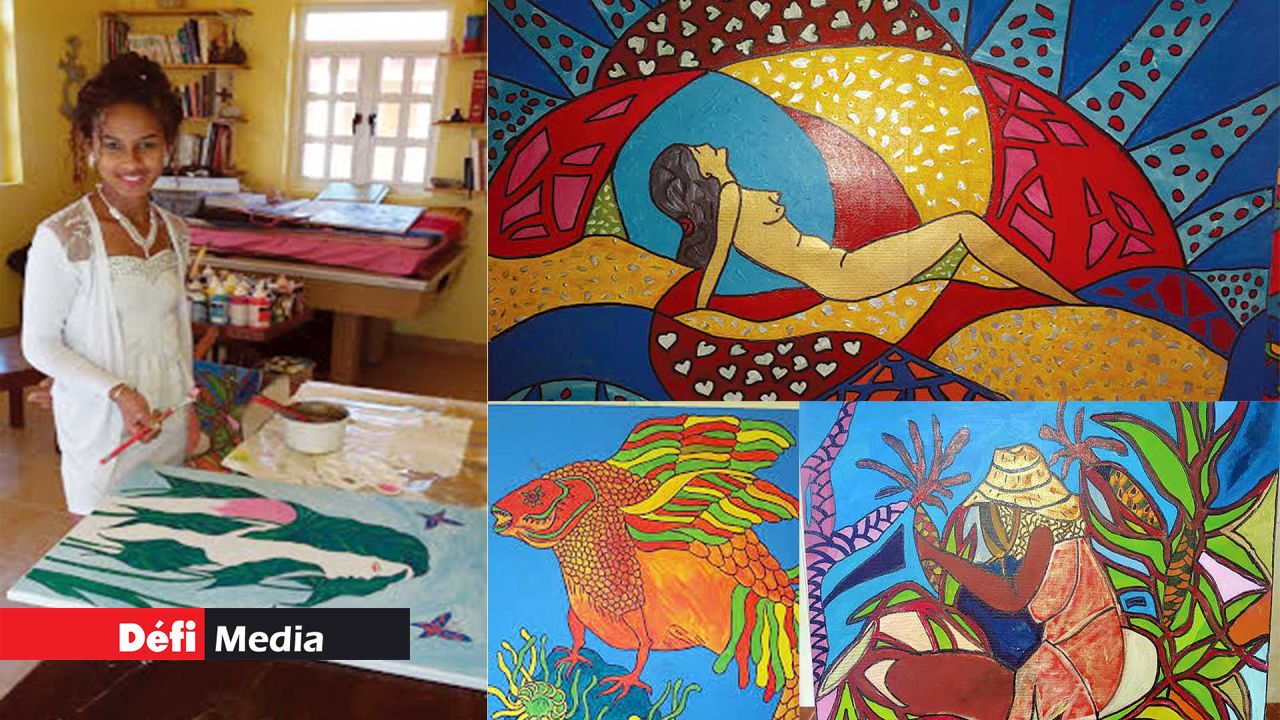 The brilliant young artist completed 12 paintings in one month. Very committed and productive, Indra will be exposing her artwork at Sofitel, Flic en Flac with another local artist. “It is a great opportunity for me. It is my first exhibition,” she states.