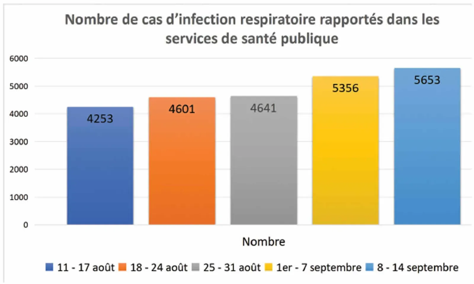 Les chiffres confirment cette flambée saisonnière : entre le 8 et le 14 septembre, 5 653 cas ont été signalés, contre 5 356 la semaine précédente. En août, les cas tournaient autour de 4 000 par semaine (4 253, 4 601 et 4 641 recensés successivement). Les virus actuellement en circulation incluent AH1N1, AH3N2, B, rhinovirus, adénovirus, virus syncytial respiratoire… sans oublier la COVID-19.