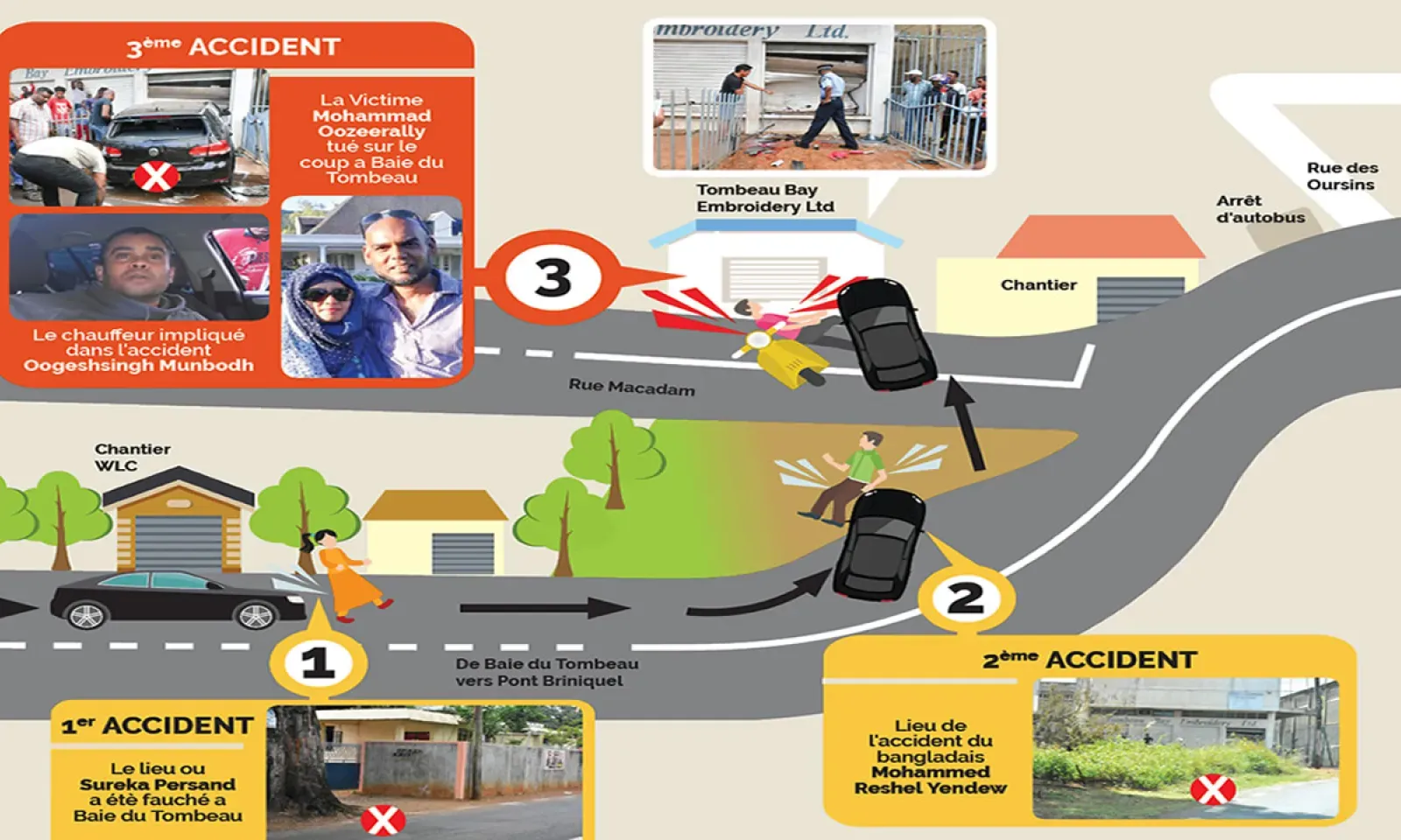 Le véhicule voiture a traîné Massood Mohammad Ozeerally sur quelques mètres avant de terminer sa course dans le rideau de fer du magasin Tombeau Bay Embroidery Ltd à Baie-du-Tombeau. Mamad Ozeerally n’a pas survécu à ses blessures.