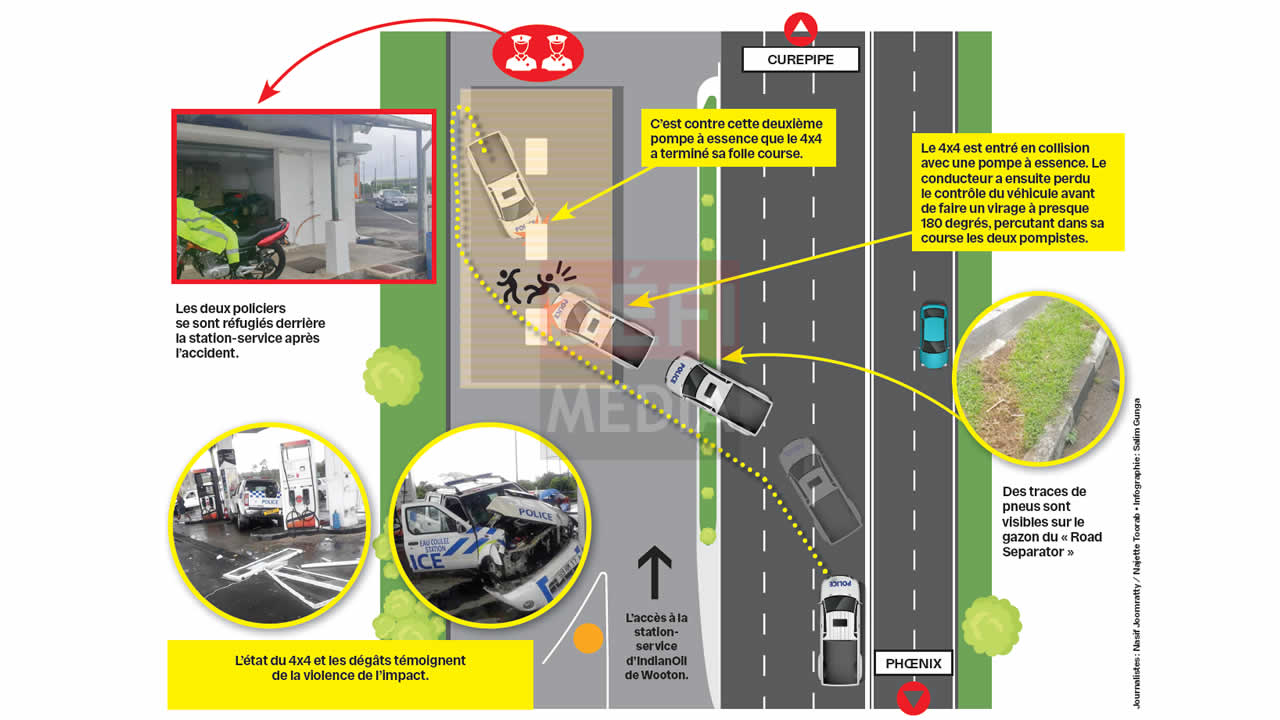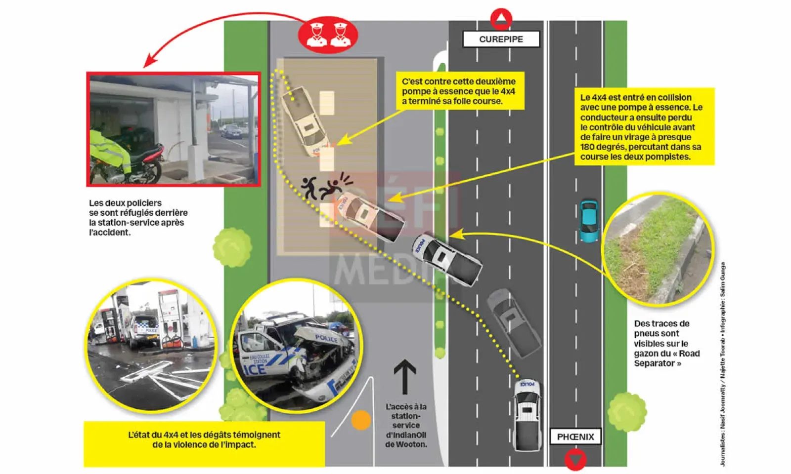 Triste fin pour Rohit Gobin. Ce pompiste de 58 ans est décédé jeudi. Il avait été grièvement blessé lors de l'accident survenu son lieu de travail à la station-service de Wooton mardi. Un 4x4 de la police a fait une sortie de route avant de terminer sa course contre une pompe à essence à la station-service de Wooton après avoir percuté deux pompistes, dont Rohit Gobin. L'autre pompiste se remet lentement de ses blessures.