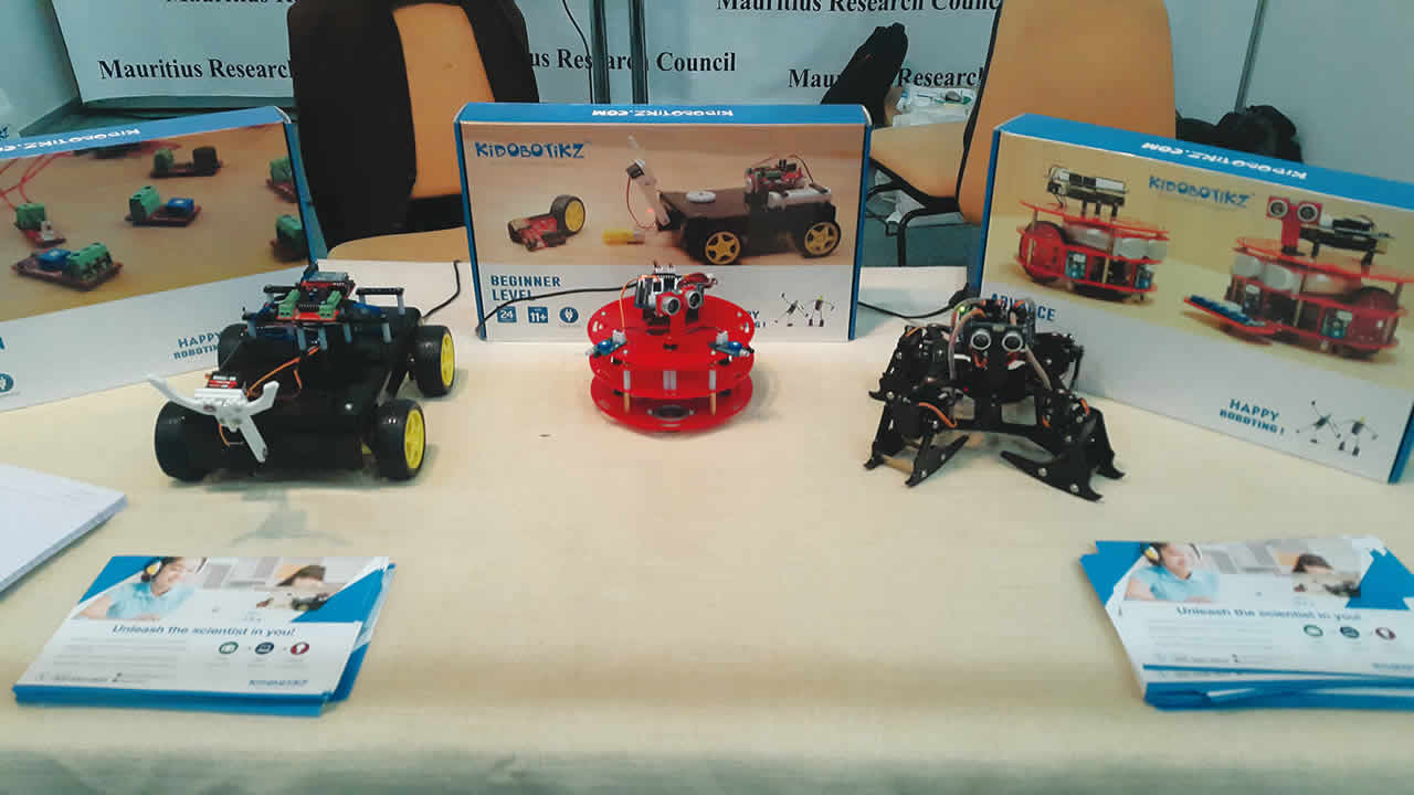 Les jeunes seront émerveillés par le monde des robots. Le Mauritius Research Council a apporté plusieurs éléments innovants de la technologie pour les jeunes. 10 entreprises sont présentes dans le coin robotique : Innovate Technology and Robotics Academy de l'Australie, Institut National de Recherches en Informatique et en Automatique de France, Impression 3D en provenance d'Afrique du Sud et Kidobotikz de l'Inde.