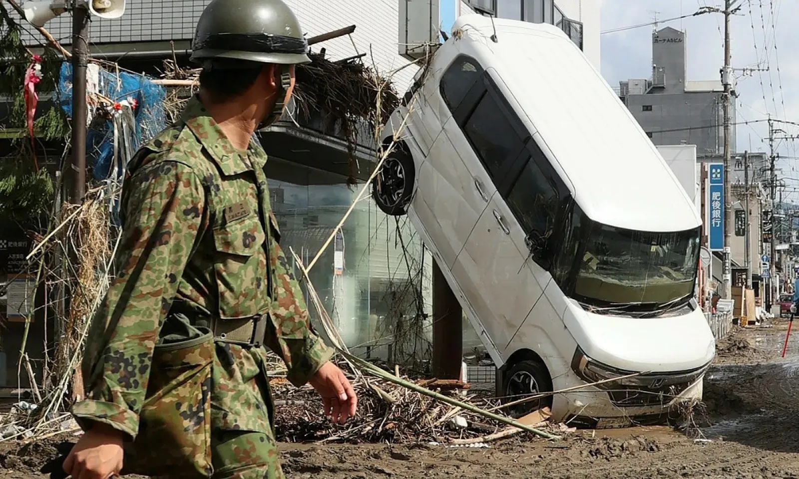 De vastes zones de Kyushu, la grande île du sud-ouest de l'archipel, avaient déjà été submergées dès samedi matin par des pluies torrentielles ayant provoqué de nombreuses inondations et glissements de terrain mortels.