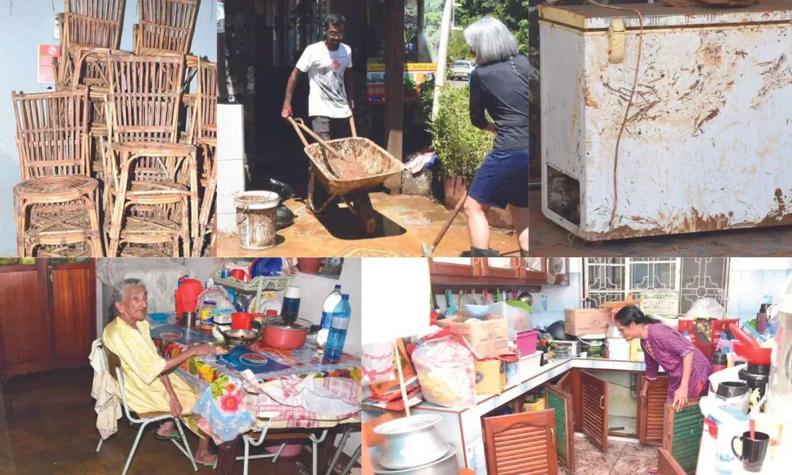 La maison de Rookian, à la rue Pitot, était toujours inondée à jeudi matin. La mère de famille a dû faire installer une pompe pour extraire l’eau accumulée. Asia, une mère de famille de 88 ans, prend son repas pieds dans l’eau. « Sa tous mwa boukou. Mo pe pas enn martir », confie-t-elle. La belle-fille d’Asia montre à quel point leurs produits de consommation ont été endommagés. Le restaurant Le Rochester a été complètement inondé. Madhav, le fils du gérant, évalue les dégâts à un peu plus de Rs 1,5 million. « Chaises, tables, appareils électroménagers, nourriture… Tout a été endommagé par l’eau et la boue », dit-il. Selon Madhav, une rivière en crue serait à l’origine du débordement ayant causé l’inondation du restaurant.