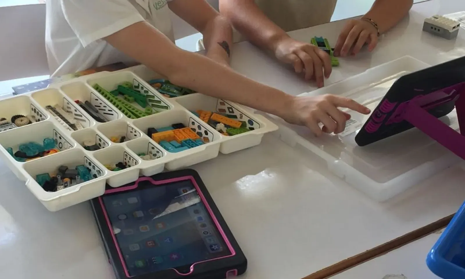 C’est dans une salle de classe avec une dizaine d’élèves âgées de 7 à 9 ans que l’équipe de Jason Tonkin nous accueille. Tablette en main et une boîte remplie de petites pièces de Lego, les mômes sont tous scotchés à leurs créations. Ils jettent un rapide coup d’œil sur la situation et replongent dans leur ouvrage.
