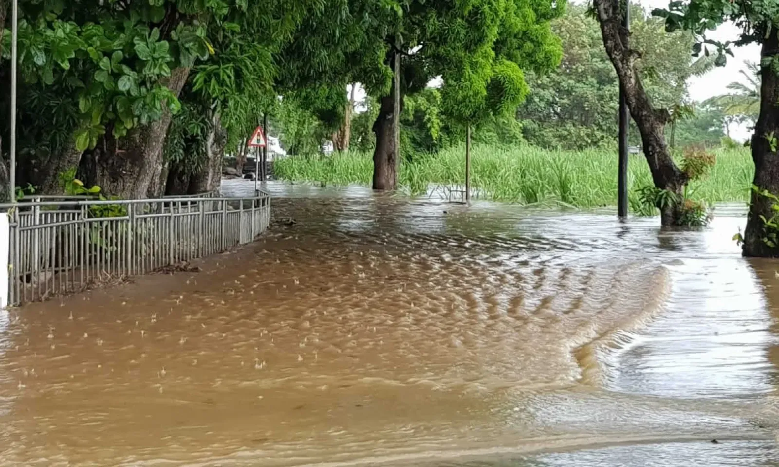 Une rivière en crue a provoqué des inondations dans la région de Bramsthan, à Flacq, ce dimanche après-midi 11 février. Ce qui a rendu un pont dans les environs, impraticable.