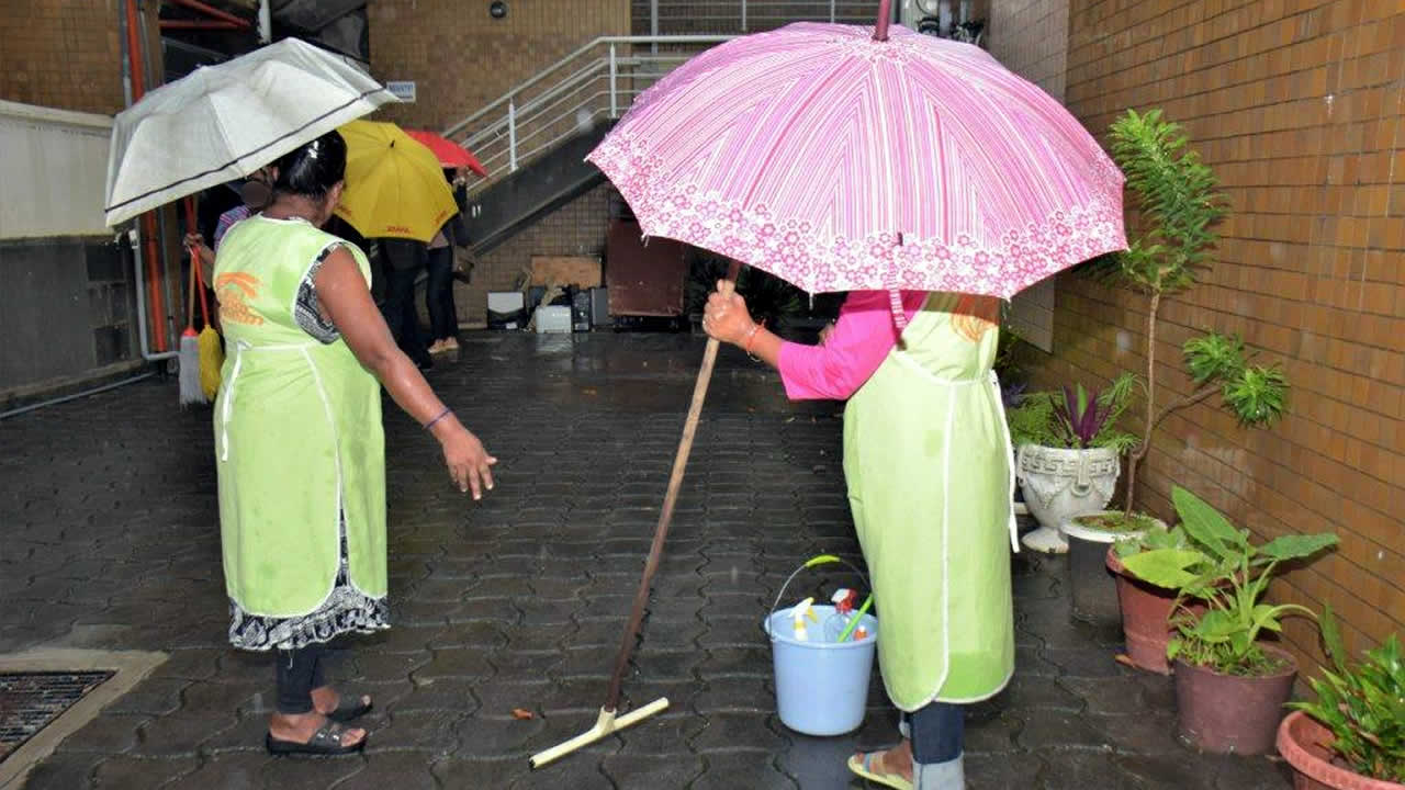 Des seaux d’eau entreposés devant le bureau d’un juge témoignent de l’état de l’édifice qui a vu une visite de la ministre de l’Égalité des genres, Kalpana Devi Koonjoo-Shah. Des employés ont craint le pire lorsque l’eau a gagné un tableau électrique. Toutefois, il n’y a eu aucun incident à déplorer au bout du compte.