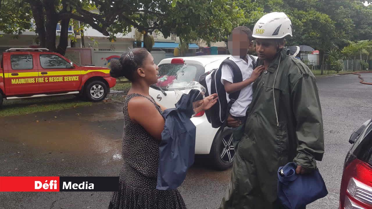 Des élèves de l’école Sathya Sai à La Caverne ont dû être évacués par des éléments de la Special Mobile Force car l’eau avait envahi des salles de classe.