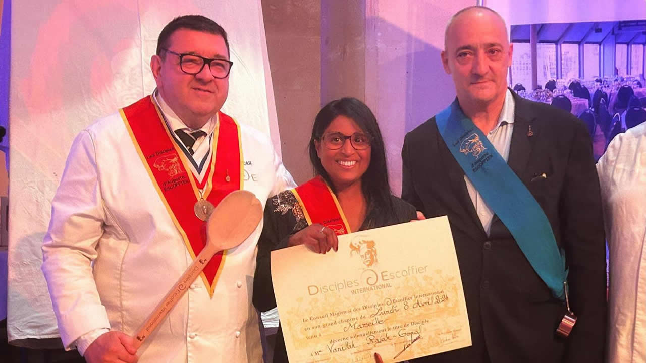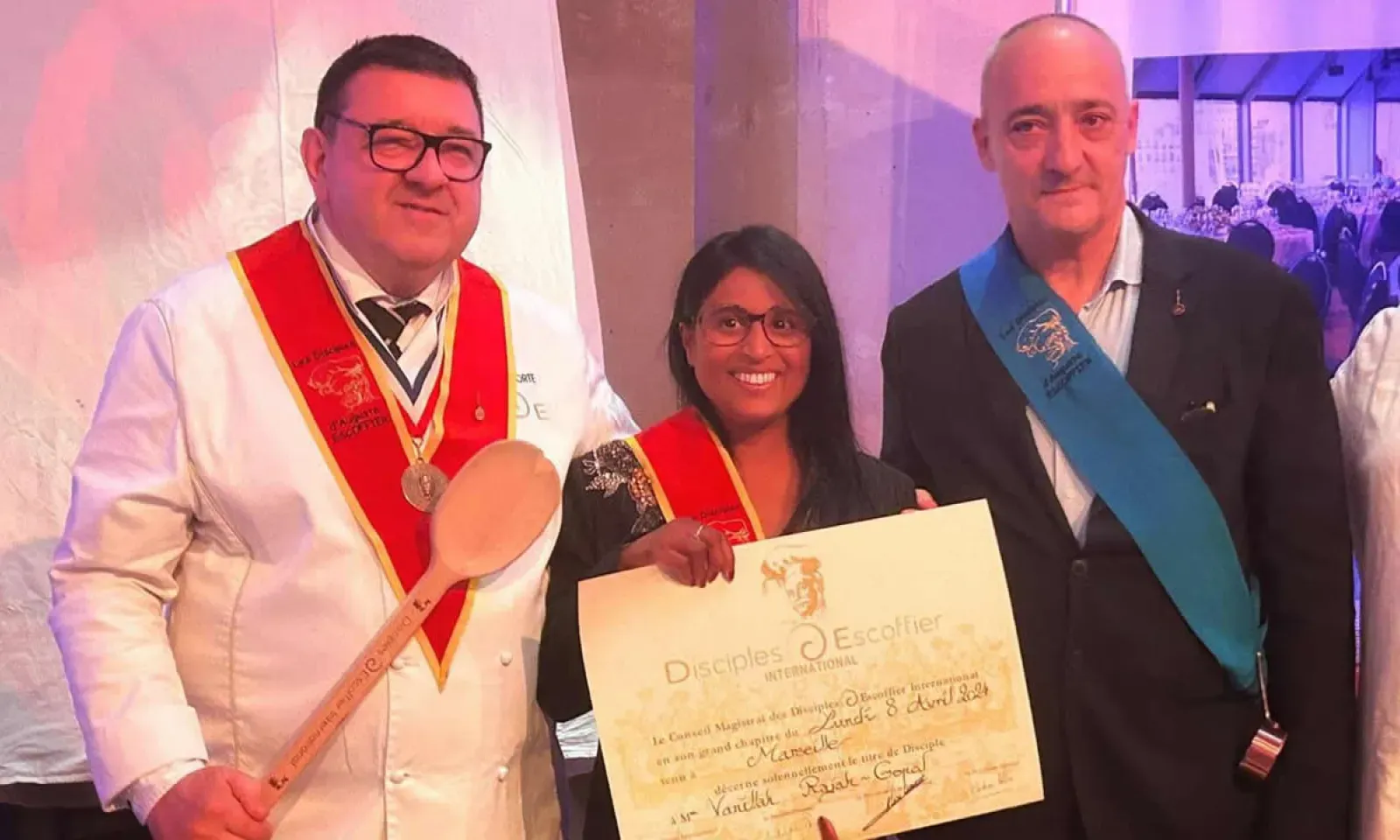 Le 8 avril 2024, à Marseille, Vanillah Rajah Gopal, propriétaire du restaurant Le Petit Chamarel, a été intronisée disciple d’Escoffier, l’un des plus grands honneurs culinaires. Pour cette Mauricienne, qui est également l’ambassadrice de la cuisine mauricienne en France, cette reconnaissance est une véritable consécration de son dévouement à l’art culinaire.
