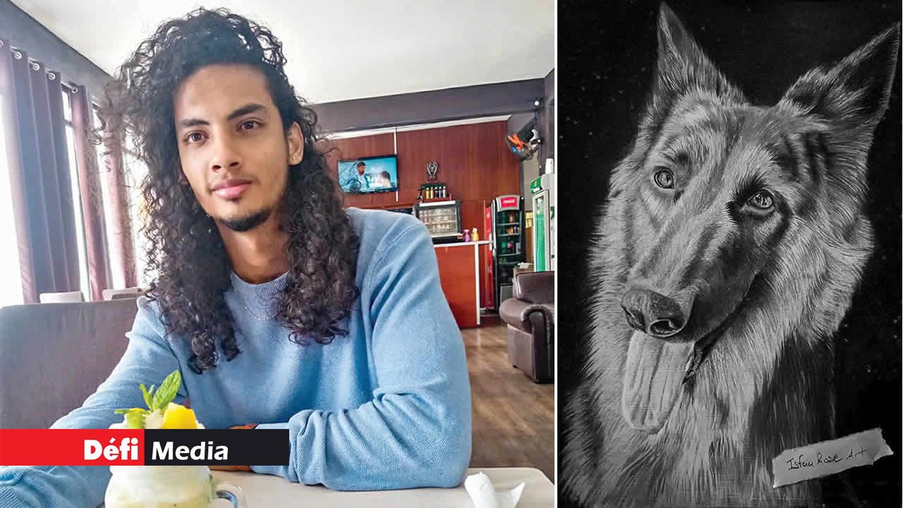 Isfaaq Rose a découvert sa passion pour le portrait durant sa préparation pour les examens d’art du Higher School Certificate. « Je n’étais pas à l’aise avec la technique du portrait. En échangeant des idées avec Miss Pamela, enseignante au collège La Confiance, j’ai décidé de faire des portraits d’animaux. D’ailleurs, j’ai dix chiens de différentes races. » Il relate qu’il a commencé par dessiner des cabriolets et des voitures avec des portes papillon en primaire.