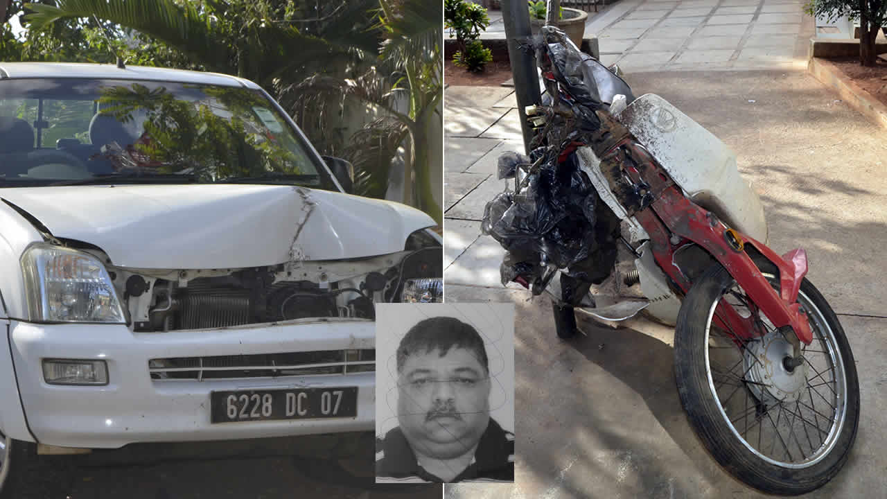 Mais vers 7 heures, alors qu’elle était à hauteur d’un temple à Arsenal, elle dit qu’elle a dérapé et a heurté des rambardes. « Une motocyclette a alors surgi devant moi, juste en face du temple », explique-t-elle. Elle poursuit que lorsqu’elle est sortie du véhicule, elle a vu le motocycliste par terre.
