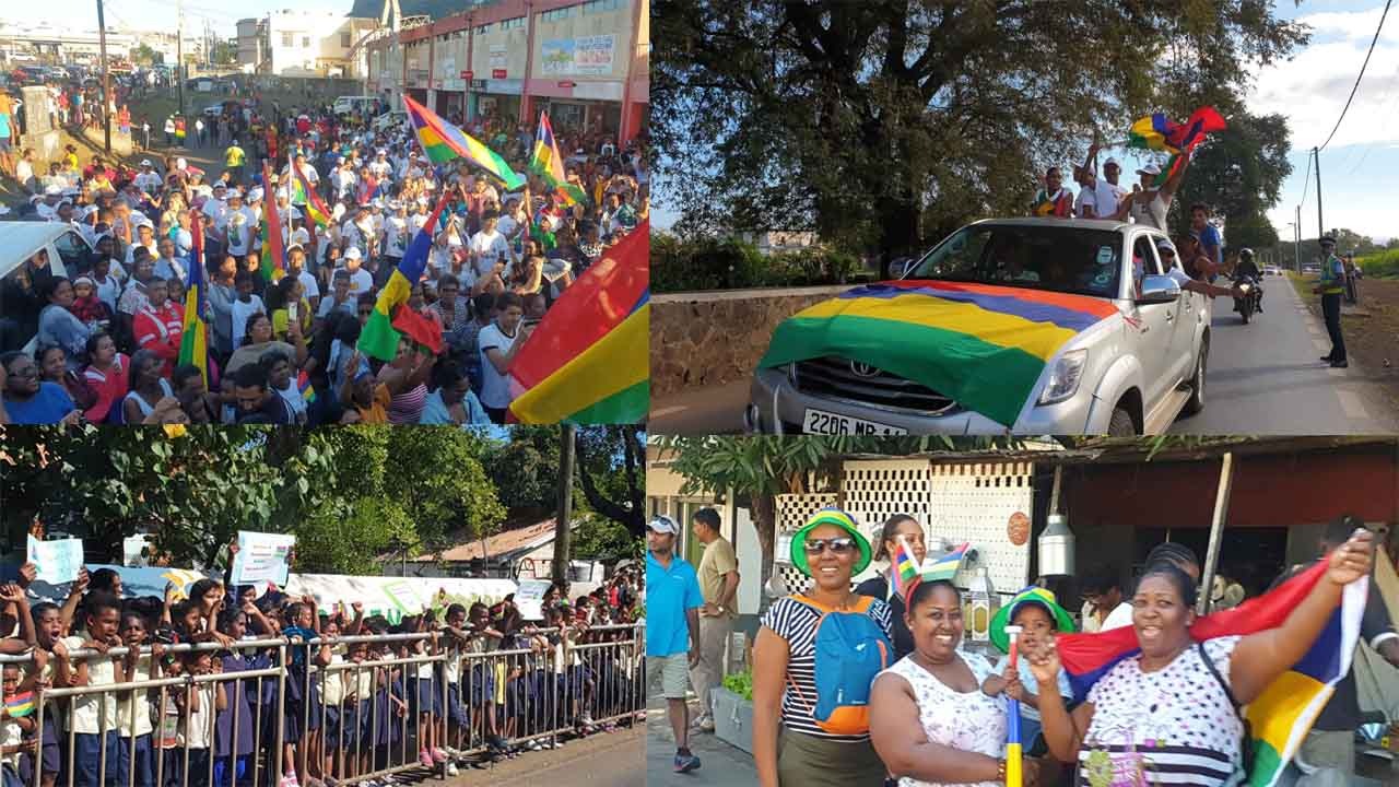 A Bambous, des écoliers sont même sortis de leurs salles de classe pour admirer la flamme et donner de la voix au passage du cortège.