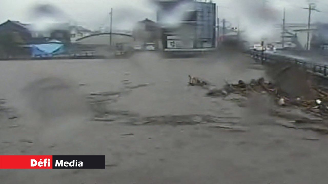 Sur des images diffusées par la chaîne publique NHK, on peut voir une rue de Wajima submergée.