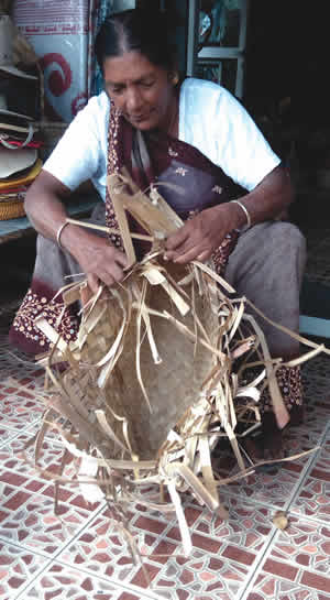 Lorsqu’on arrive un beau matin à Brisée-Verdière dans l’atelier de Jayrani Bulleeram, une veuve de 70 ans, on découvre sur le présentoir de nombreux objets traditionnels comme des paniers, chapeau et porte-photo, entre autres.