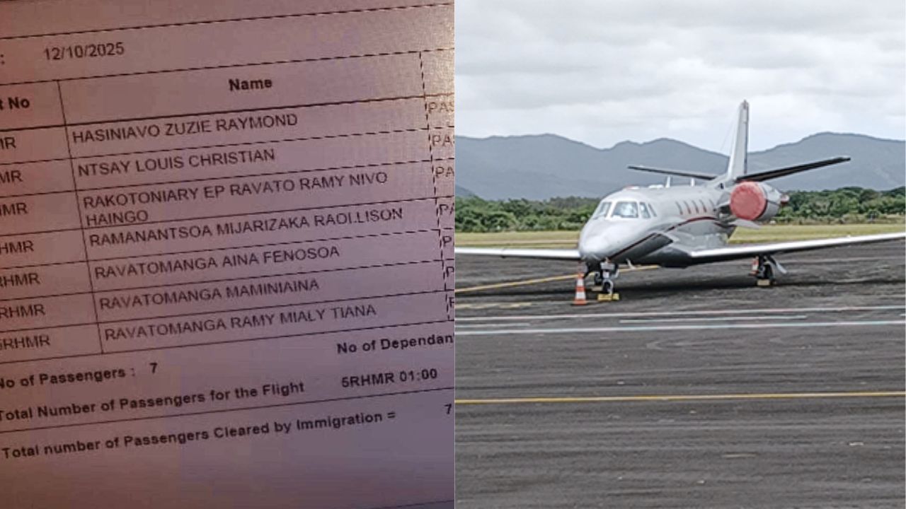Le président malgache Andry Rajoelina ne se trouvait pas parmi les sept personnes à bord du jet privé ayant atterri à Maurice dans la nuit de samedi. En revanche, l’appareil avait à son bord l’ex-Premier ministre malgache, Christian Louis Ntsay, Ravatomanja Maminiaina, homme d’affaires, leurs épouses respectives ainsi que les membres de l’équipage.