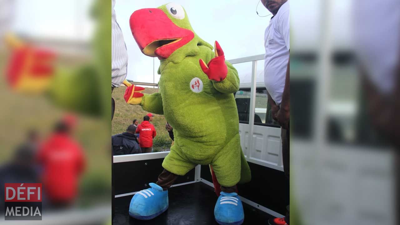 C'était aussi la première sortie officielle de Krouink, la mascotte des prochains JIOI. Il s'agit d'un gros cateau vert, oiseau endémique à Maurice et qui était en danger d'extinction.