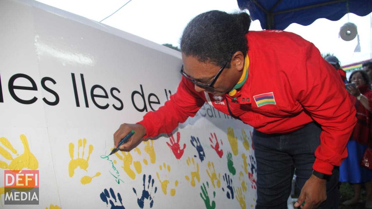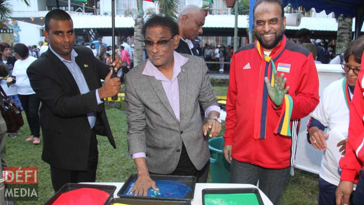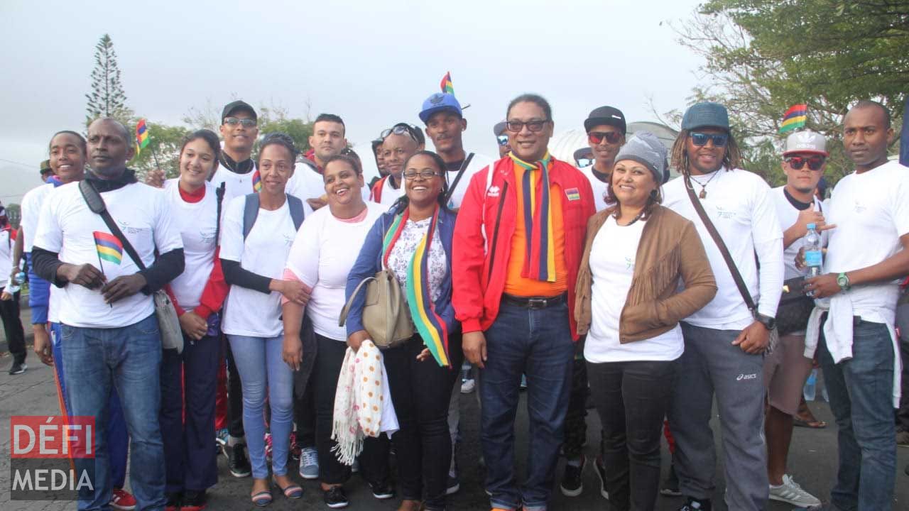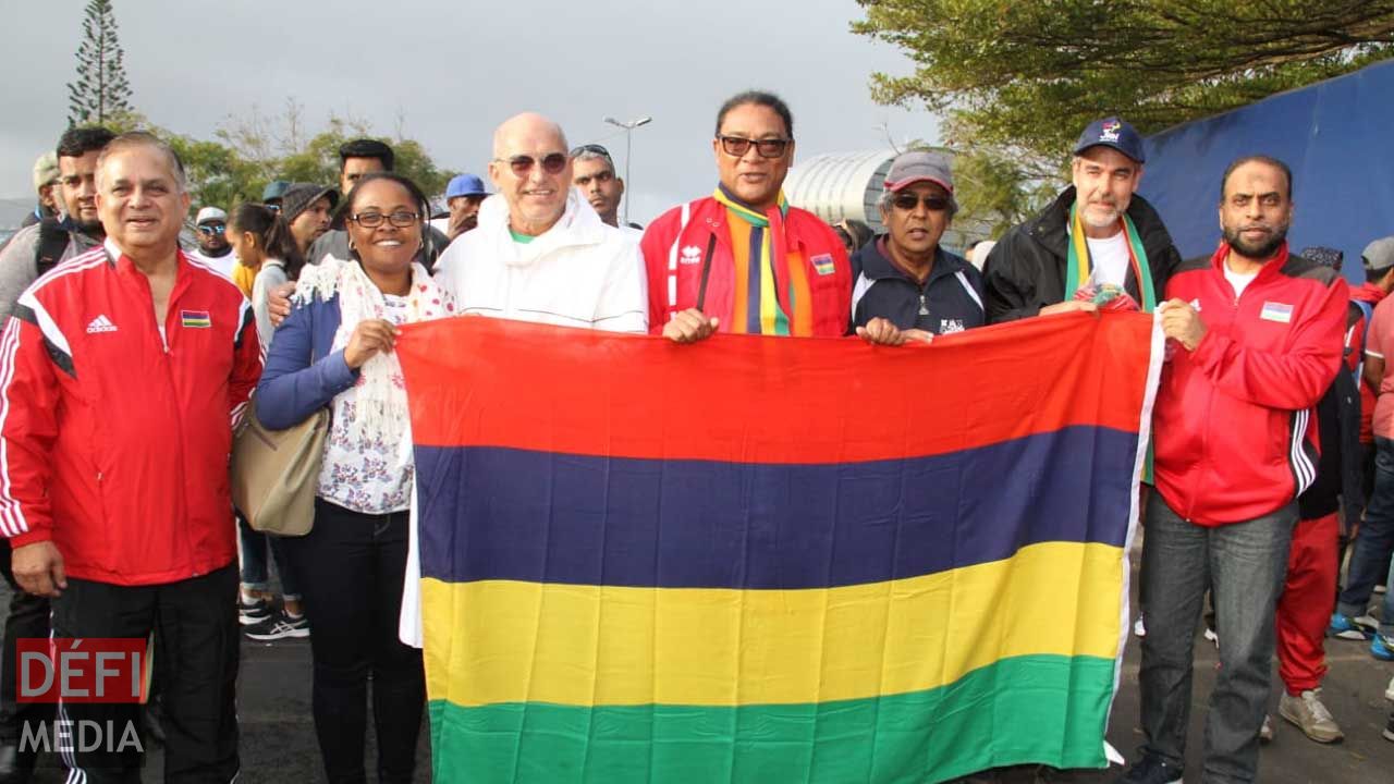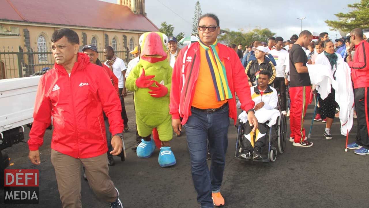 Le ministre de la Jeunesse et des Sports Stéphan Toussaint et le président de la République par intérim Barlen Vyapoory, ainsi que des sportifs qui défendront le quadricolore à ces Jeux, ont participé à ce carnaval.