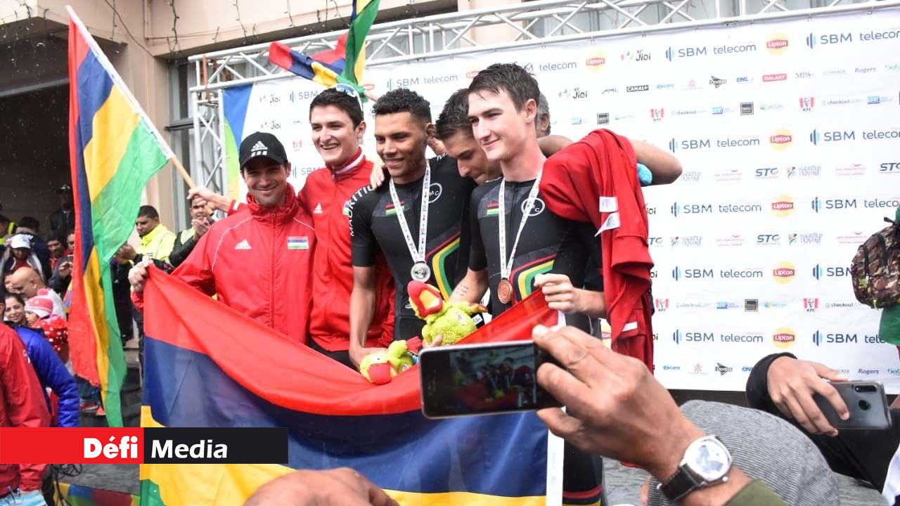 Belle victoire d’Alexandre Mayer. Le cycliste mauricien a offert à Maurice sa 91e médaille d’or lors de la course en ligne qui a eu lieu ce samedi matin 27 juillet. Il a devancé ses coéquipiers Dylan Redy et Grégory Lagane sur la ligne d’arrivée. Ces derniers remportent respectivement la médaille d’argent et la médaille de bronze.