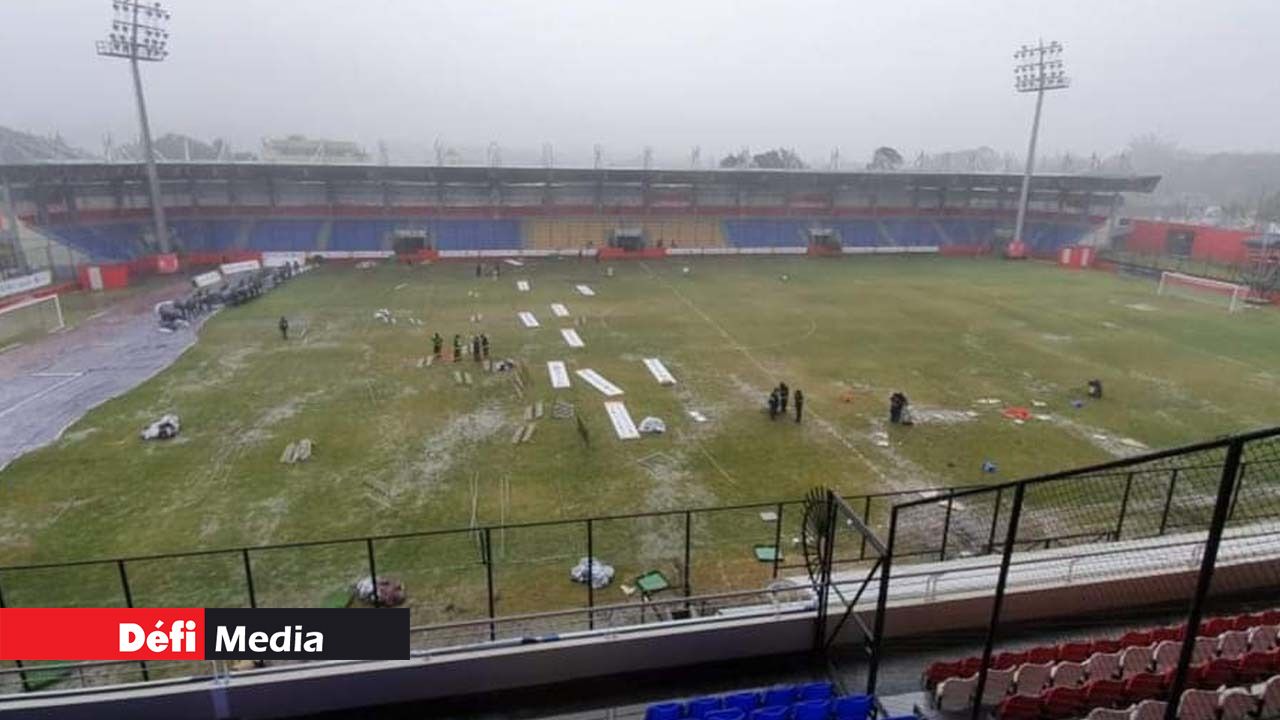 Depuis ce matin, l’état de la pelouse faisait l’objet de toutes les attentions. Des pompiers, des éléments de la SMF ainsi que des employés de la Waste Water Management Authority s’activaient à enlever l’eau de la pelouse détrempée par endroits. Mais rien n’y a fait. La pelouse avec la pluie qui s’abattait au fil des minutes sur Curepipe s’était détériorée. Le terrain du stade George V n’est donc plus praticable pour le bon déroulement de cette finale entre le club M et La Réunion et la sécurité physique des 22 acteurs.