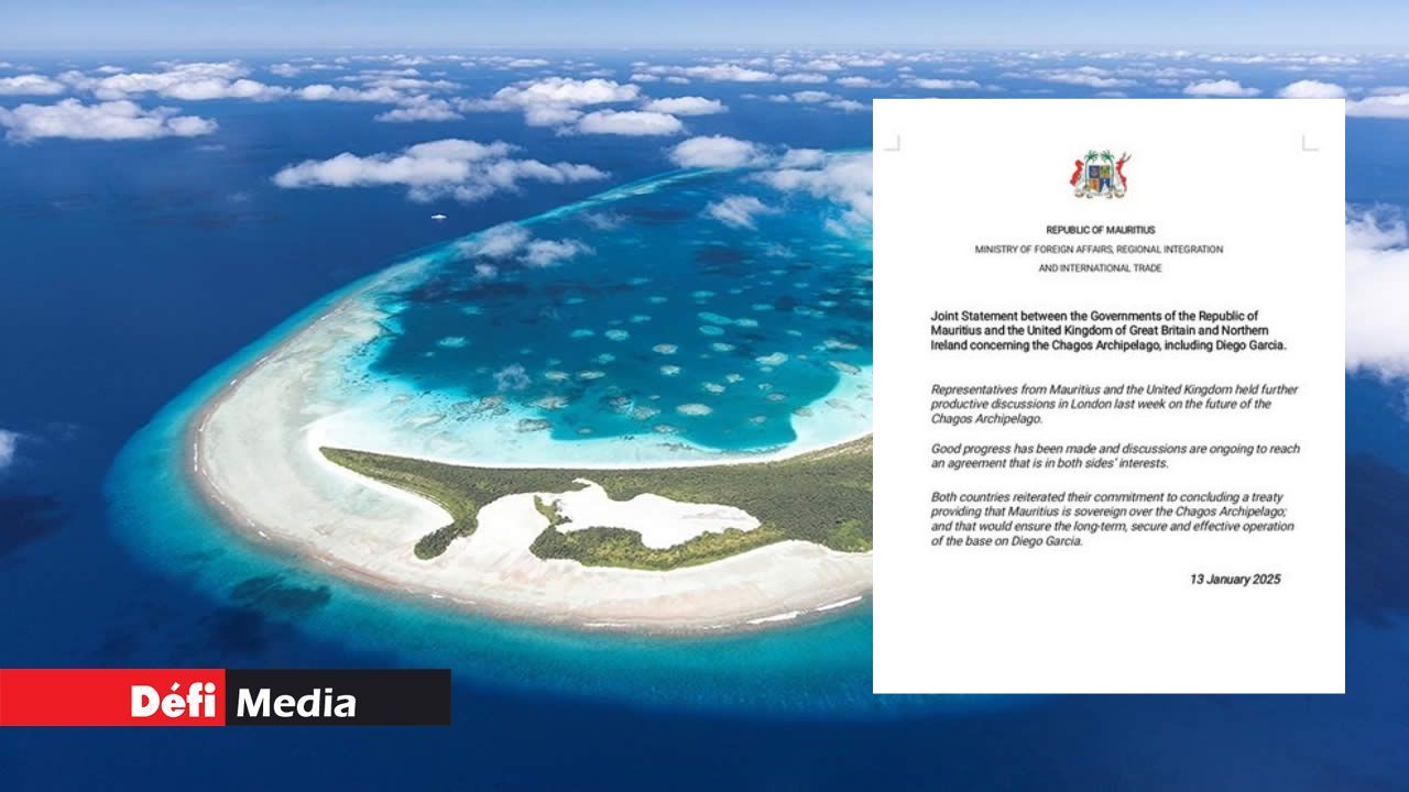 « Les deux pays ont réaffirmé leur engagement à conclure un traité reconnaissant la souveraineté de Maurice sur l'archipel des Chagos, tout en garantissant le fonctionnement à long terme, sécurisé et efficace de la base de Diego Garcia », indique-t-on dans le communiqué.