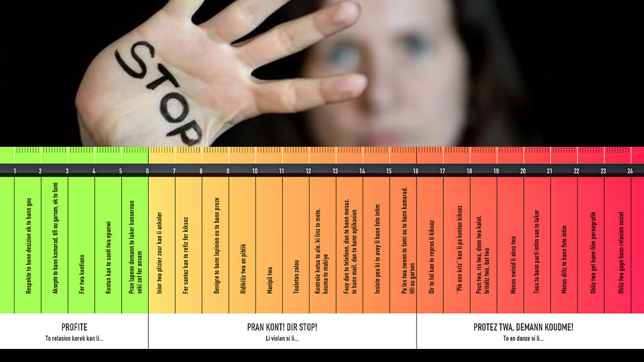 Le violentomètre est votre outil personnel. Vous pouvez à la discrétion de tous, déterminer dans quel type de relation est ce que vous vivez en ce moment.