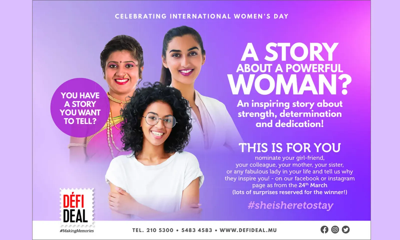 L’une d’entre elles sera désignée par le public, qui est invité à nommer et voter pour une femme ayant fait la différence, sur la page Facebook DefiDeal.mu et Instagram