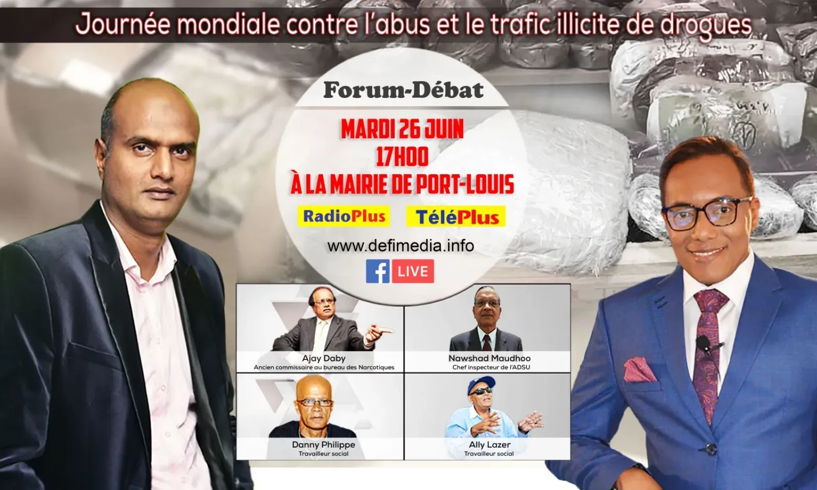 Dans le cadre de la Journée mondiale contre l’abus et le trafic illicite de drogues, Radio Plus vous propose un forum-débat ce mardi après-midi 26 juin à la mairie de Port-Louis.