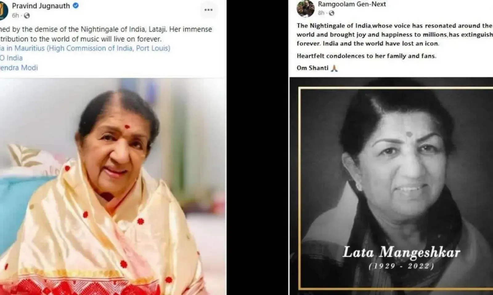 Le leader du Parti Travailliste, Navin Ramgoolam, a également rendu hommage à celle que l'on surnomme le « Nightingale of India » sur son compte officiel Facebook.
