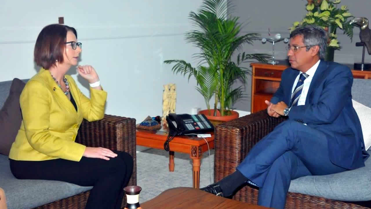 Julia Gillard a aussi rencontré le Premier ministre suppléant Xavier-Luc Duval à son bureau.