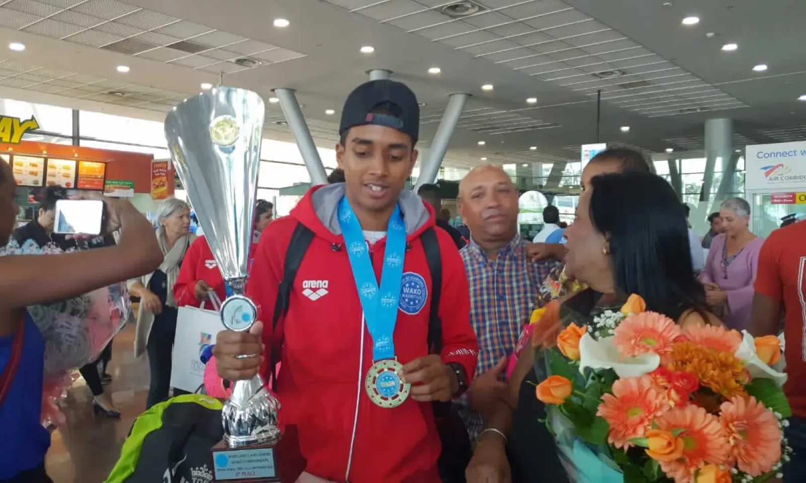 Warren Robertson, sacré champion du monde junior de kick-boxing dans la catégorie des moins de 54 kg, samedi en Italie, a reçu un accueil digne de ce nom mardi. Proches, amis et dirigeants de la fédération ont fait le déplacement à l’aéroport Sir Seewosagur Ramgoolam, à Plaisance, pour le féliciter pour son sacre mondial.