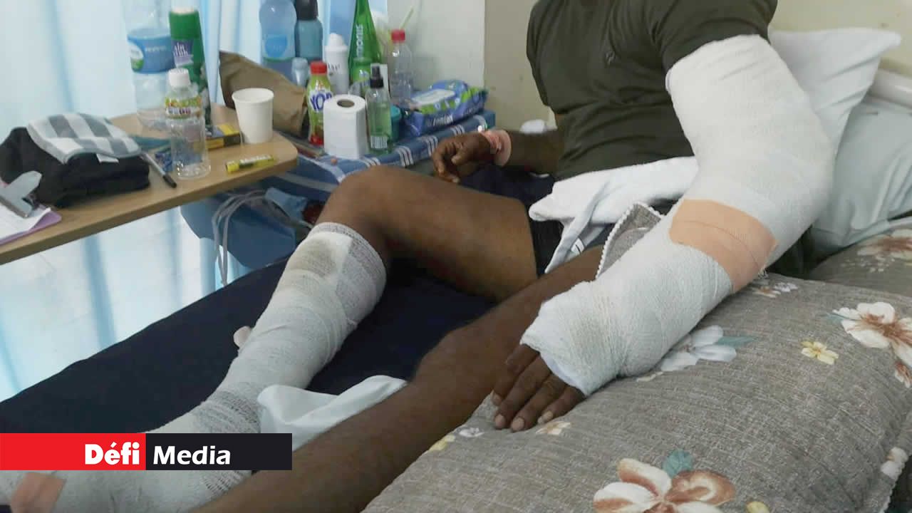 Allongé sur son lit d’hôpital, Ridwan Khodabaccus peine à bouger. Son corps est meurtri, marqué par de multiples blessures : des contusions aux reins, aux bras et aux pieds, ainsi que plusieurs entailles. « Zonn res bat mwa, zonn ale mem. Depi 23 zer ki zot inn pran mwa ziska 5 er, zonn res bat mwa », témoigne l’homme de 31 ans.