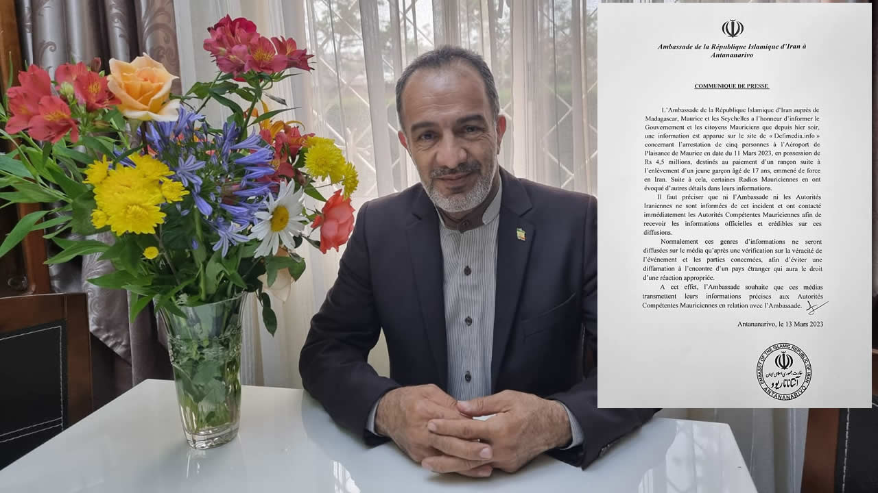 L’ambassade a émis un communiqué. Elle a aussi demandé de plus amples informations à Maurice. « Dans quelle province d’Iran se trouve l’adolescent ? Comment est-il arrivé au pays ? Est-ce par voie maritime ou par voie aérienne ? Nous attendons le maximum d’informations des autorités mauriciennes pour qu’une enquête soit ouverte en Iran », a expliqué Hassan Ali Bakhshi, ambassadeur iranien à Madagascar, dans une déclaration accordée au Défi Quotidien.
