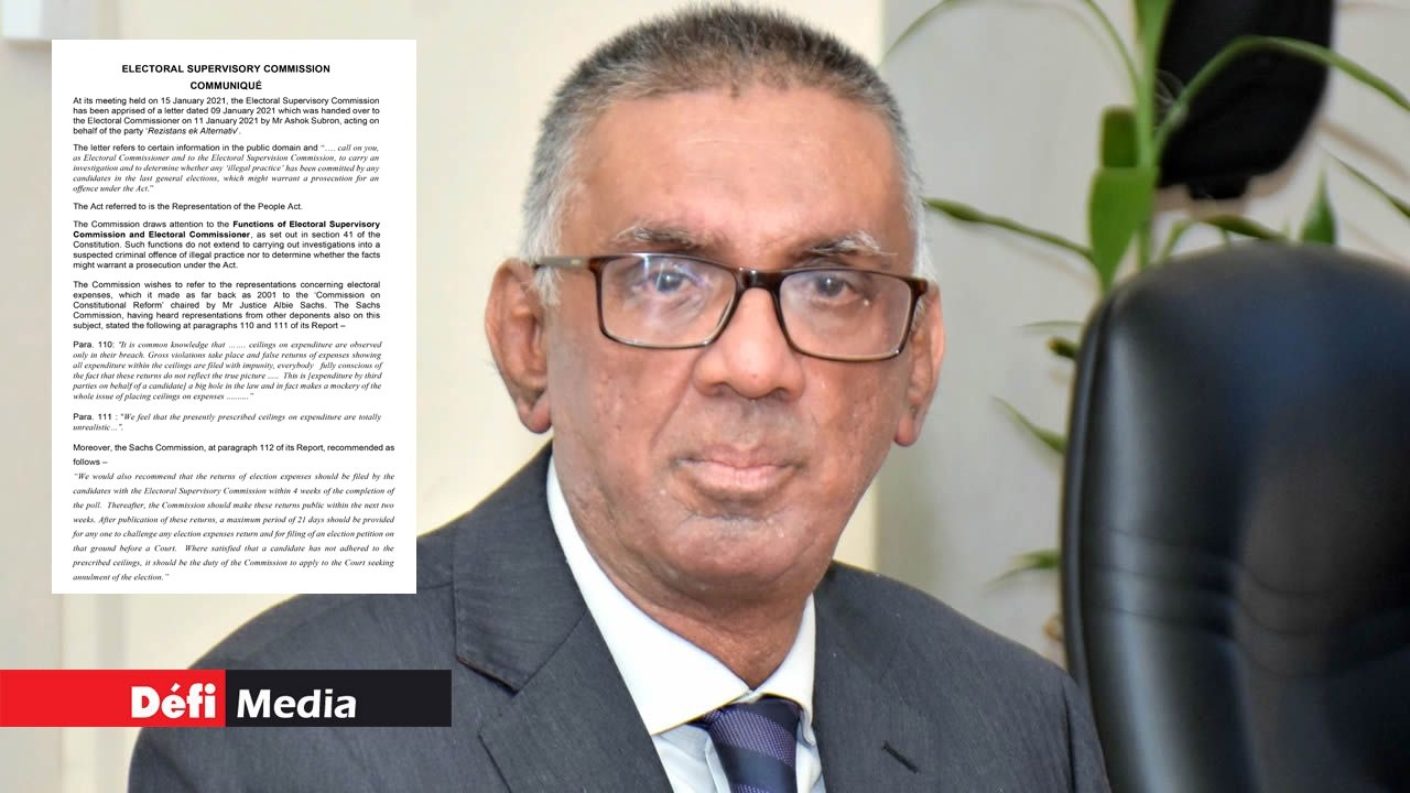 Dans un communiqué, émis ce vendredi 15 janvier, l'ESC explique qu'elle a été informée de la réponse du commissaire électoral à la lettre de REA, et de la décision du commissaire électoral, Irfan Rahman, de saisir le commissaire de police pour enquêter sur toute suspicion d'infraction électorale.