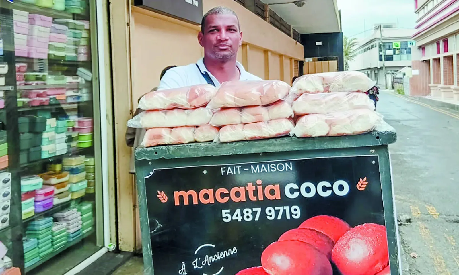 Formé en hôtellerie et spécialisé en pâtisserie, Kursley Ramen a parcouru le monde sur des bateaux de croisière avant que la pandémie ne bouleverse sa carrière. De retour à Maurice, il a troqué les desserts raffinés contre un métier presque disparu : la confection artisanale de macatia coco. Depuis 2020, ce père de trois enfants âgés de 9 à 20 ans s’est réinventé en marchand ambulant, redonnant vie à un trésor culinaire mauricien.