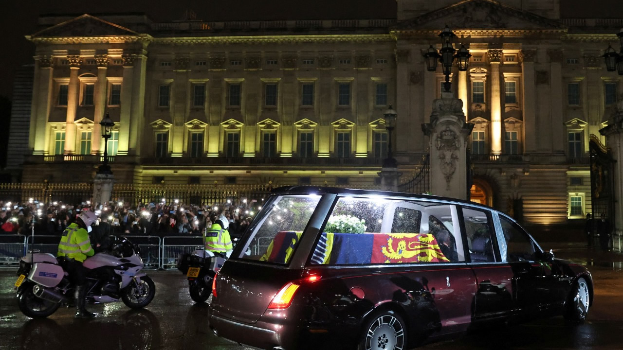 Mardi soir, la princesse Anne, unique fille d'Elizabeth II, avait accompagné son cercueil dans l'avion qui le menait d'Edimbourg à Londres. Le nouveau roi Charles III, fils aîné d'Elizabeth, était présent pour accueillir la dépouille à son arrivée au palais de Buckingham, après avoir passé la journée en Irlande du Nord, une étape délicate de son accession au trône.