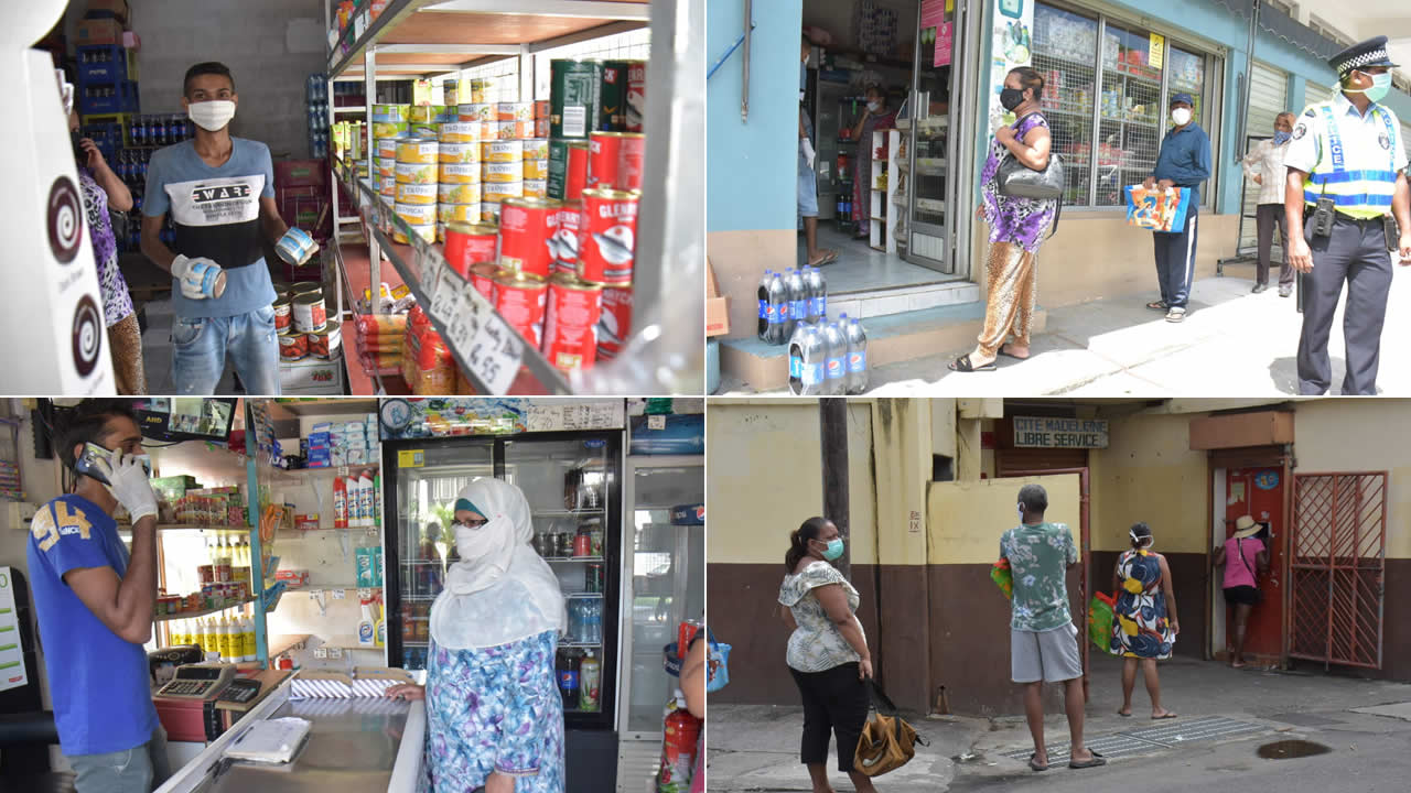 Avec les membres de la force policière dans les parages, les Mauriciens qui se sont rendus dans les superettes ou autre boutiques dans les régions de Tranquebar et Vallée-Pitot se voient dans l’obligation de respecter la ‘social distancing’.