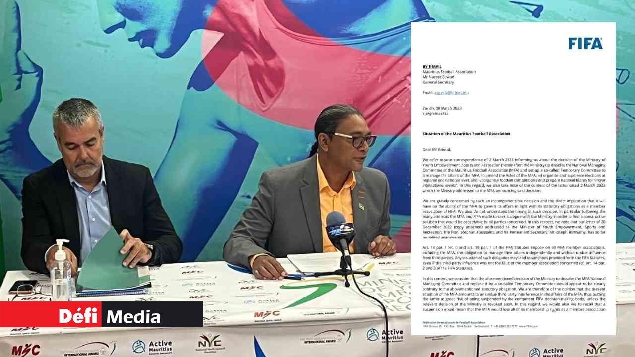 La dissolution du comité directeur de la Mauritius Football Association (MFA) expose Maurice à de lourdes sanctions de la FIFA. Celle-ci avertit que si le ministère des Sports à Maurice ne revient pas sur sa décision de nommer un comité temporaire avant le 16 mars 2023, permettant ainsi au comité directeur de reprendre le contrôle de la MFA, la question sera soumise au Conseil de la FIFA pour examen et décision.