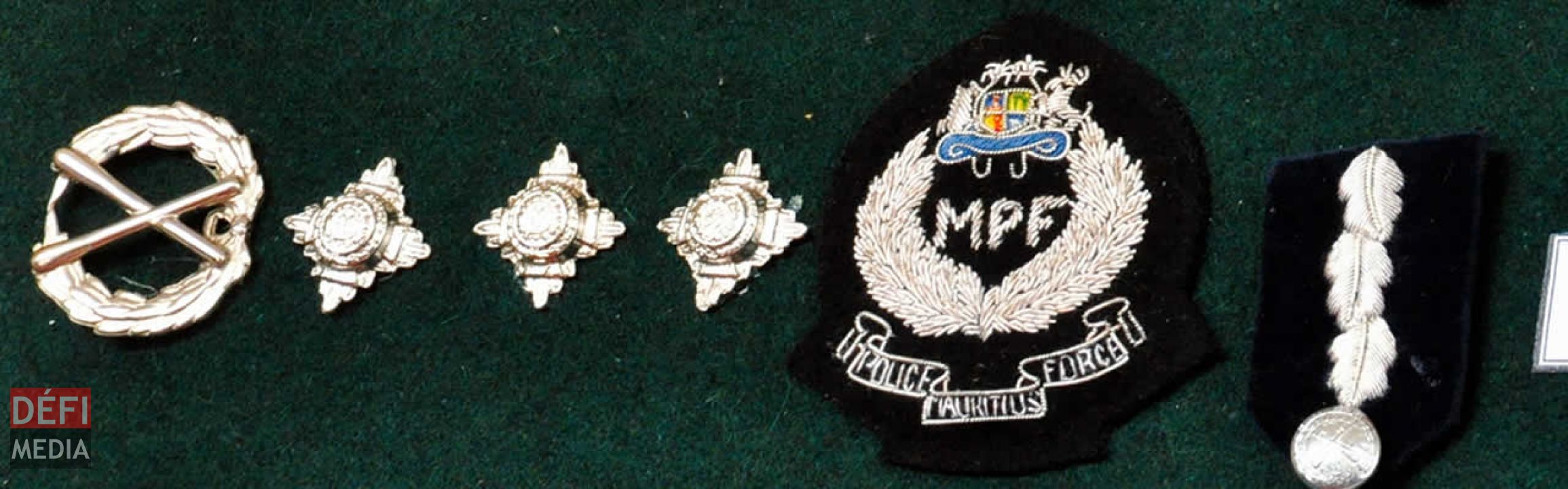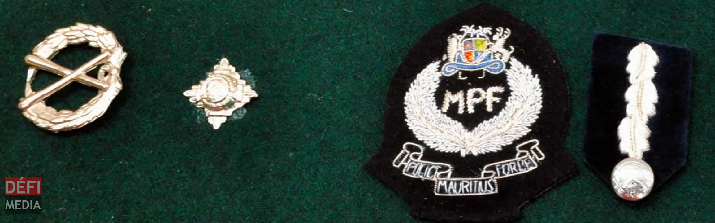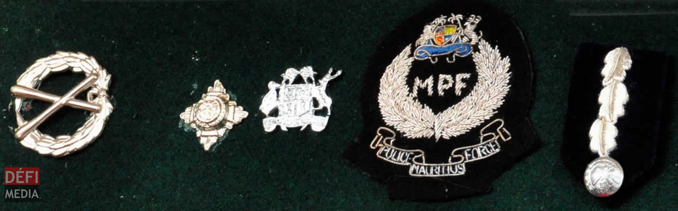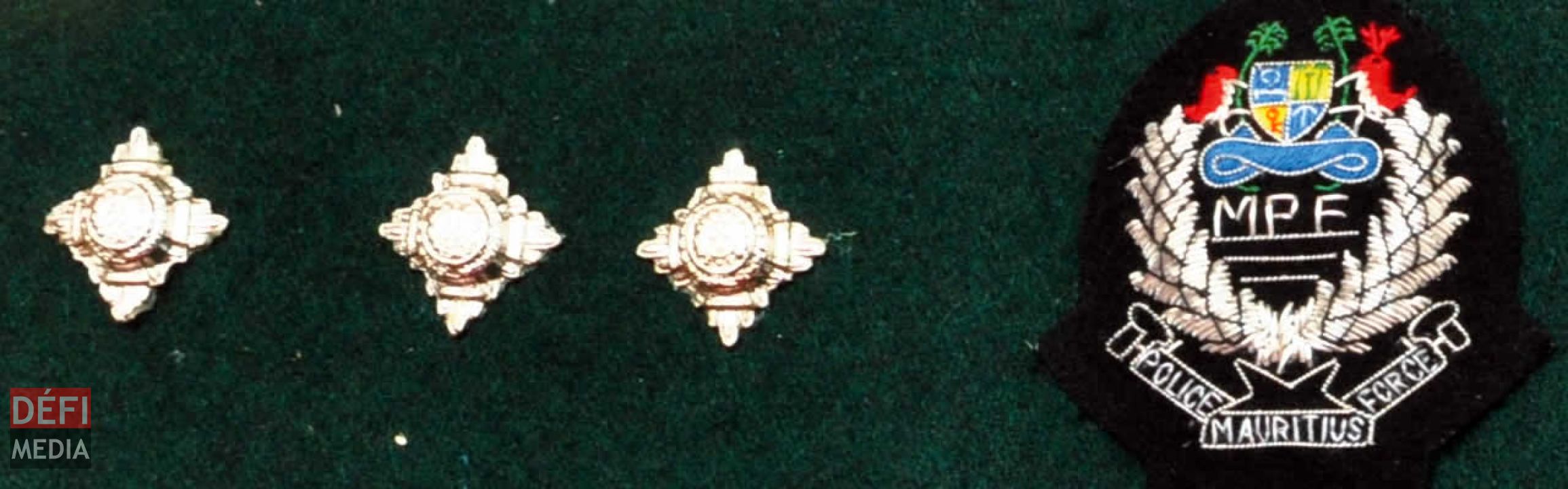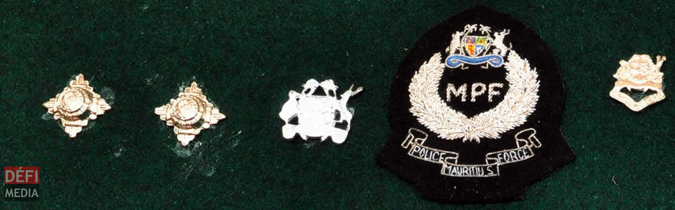 - Commissaire de Police. Un crossed tipstaves entouré d’une couronne + un Mauritius Coat of Arms et une étoile + un revers (lapels)