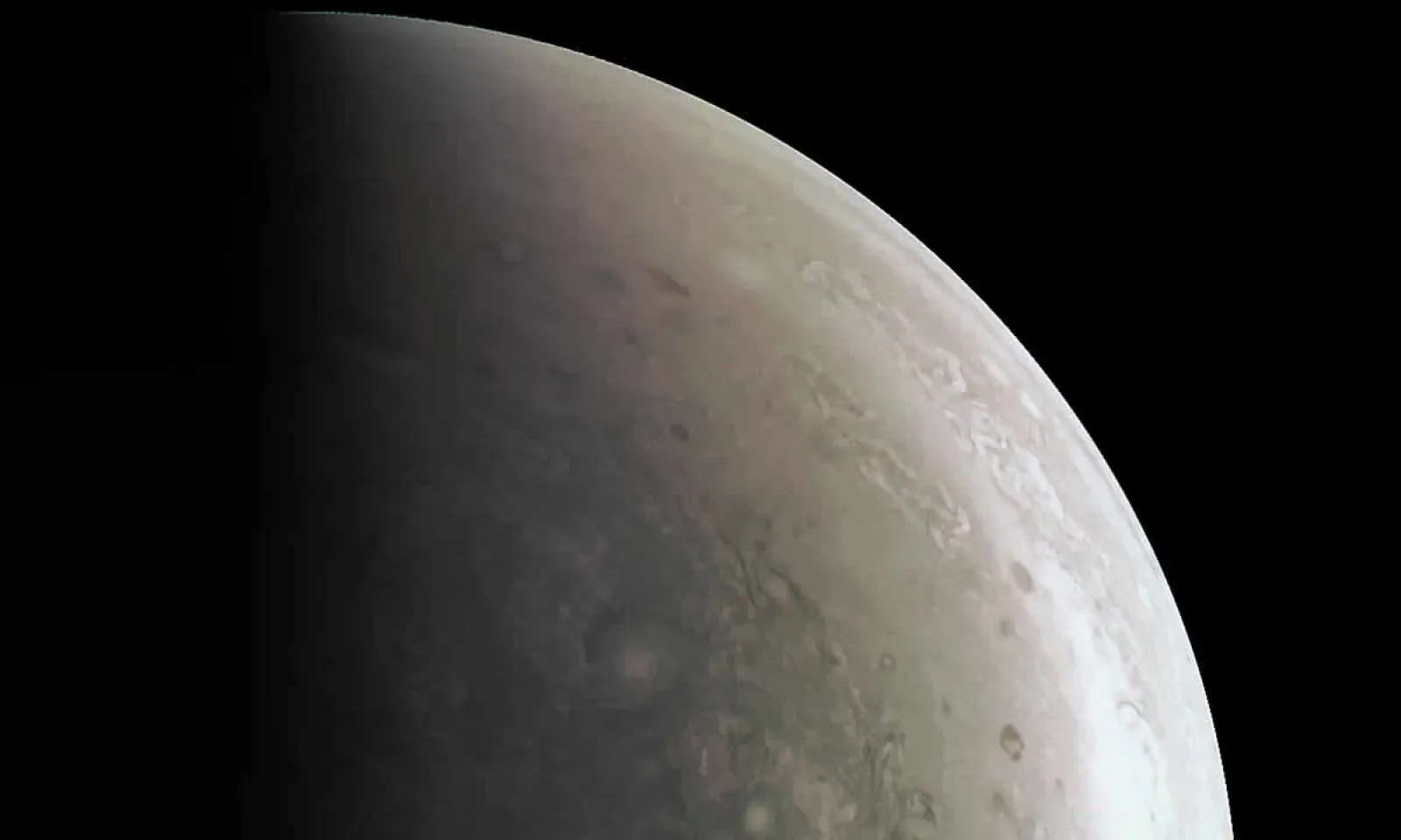 "Les couleurs sont plus bleues que dans les autres parties de la planète et il y a de nombreuses tempêtes et aucun signe des bandes de différentes couleurs que nous avons l'habitude de voir autour de Jupiter", a-t-il précisé. Selon lui, "il est très difficile de reconnaître Jupiter dans ces clichés".