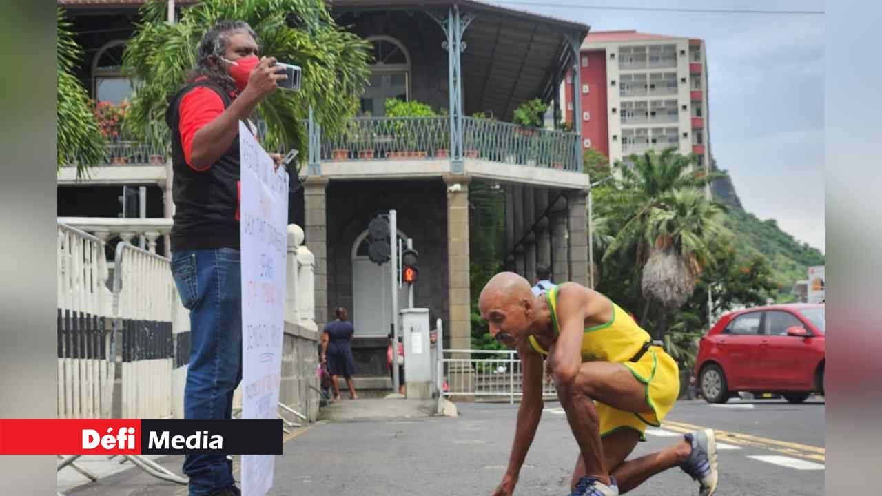 Une scène qui a capturé l'attention de notre photographe ce matin de mardi. Voyez plutôt : un homme s'agenouille devant une pancarte brandie par Reuben Pillay, en face de l'Hôtel du Gouvernement. Sur la photo, on dirait qu'il étudie attentivement ce qui est écrit sur la pancarte.