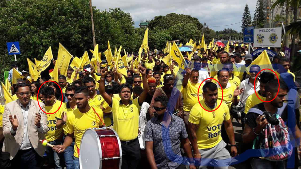 Une photo de Kusraj Lutchigadoo et de ses frères en compagnie de Roshi Bhadain circule sur la toile. Il a récemment été interpellé et arrêté dans un laboratoire de fabrication de drogue synthétique. Sur le cliché, on le voit au premier rang d’un défilé du Reform Party (2e à partir de la dr.). À sa droite, on reconnaît son frère Kelvi, également inquiété dans cette affaire. À l’extrême gauche, juste derrière Roshi Bhadain, on aperçoit Raju, l’autre membre de la fatrie Lutchigadoo. Les trois frères arborent les couleurs du parti de l’ancien ministre de la Bonne gouvernance.