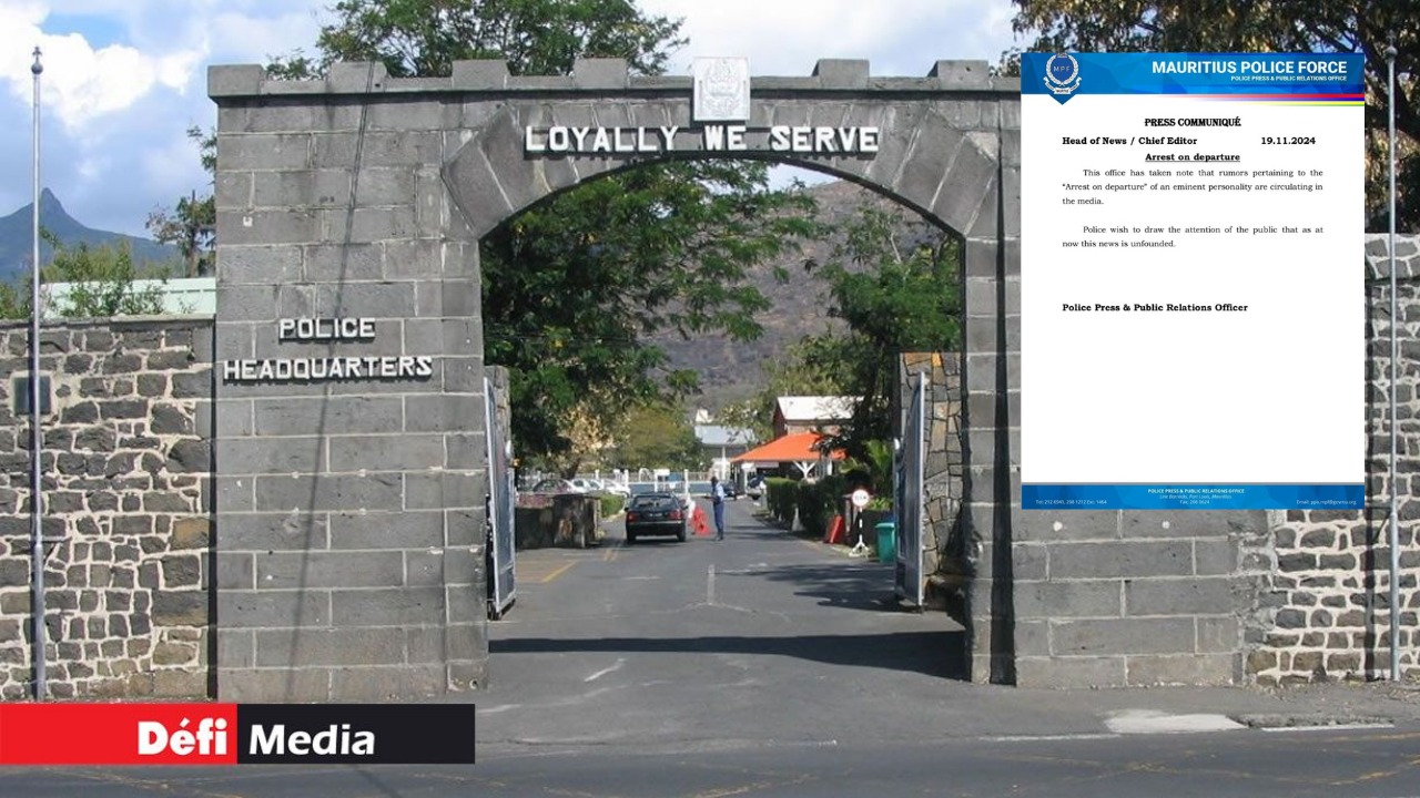 La police dit avoir pris connaissance de certaines rumeurs autour d'un ordre d'«arrest upon departure» visant une éminente personnalité. La police, dans un communiqué émis ce vendredi, précise que ces rumeurs ne reposent sur aucun fondement.