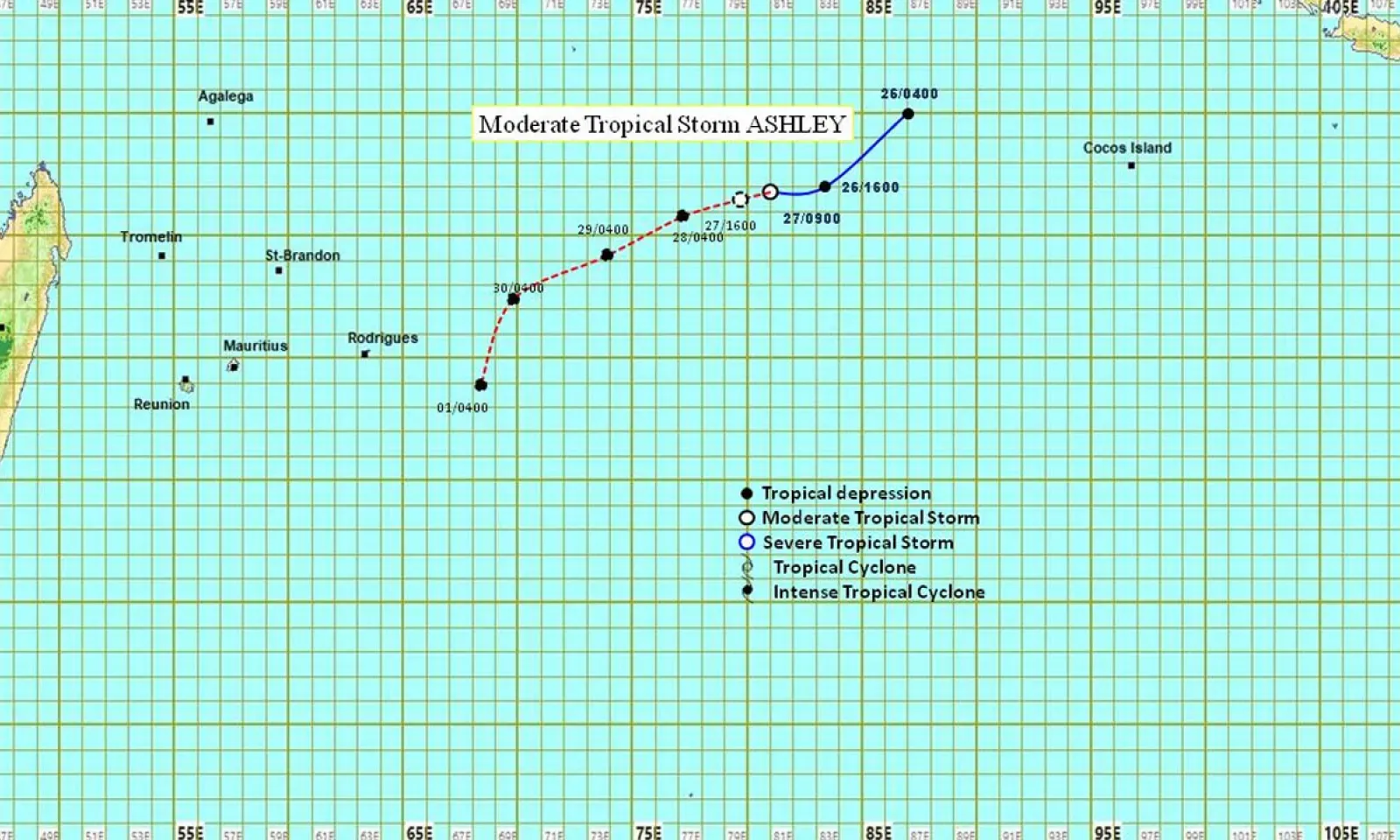 C’est à 9 heures ce matin, qu’elle a été baptisée par les services météorologiques de Maurice. Ashley est la première tempête tropicale de la saison.