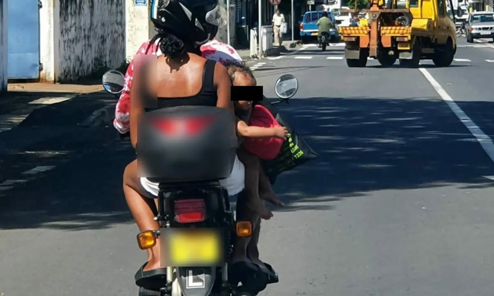 La sécurité semble être le cadet des soucis de certaines personnes. Sur cette photo prise, cette semaine, route Nicolay, à Port-Louis, cette mère de famille tient son bébé sur une jambe. Ce qui fait qu’au moindre heurt, le bébé pourrait être le premier à se retrouver sur l’asphalte.