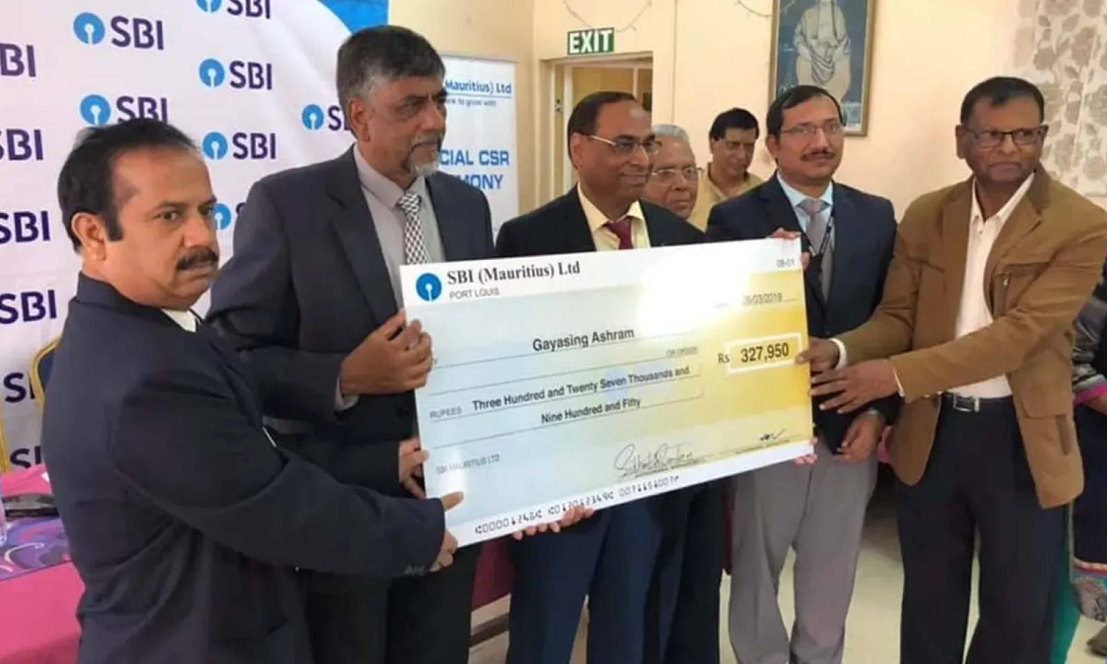 La State Bank Of India (SBI) a octroyé dernièrement une somme de Rs 328 000 pour le Gayasingh Ashram de Port-Louis.