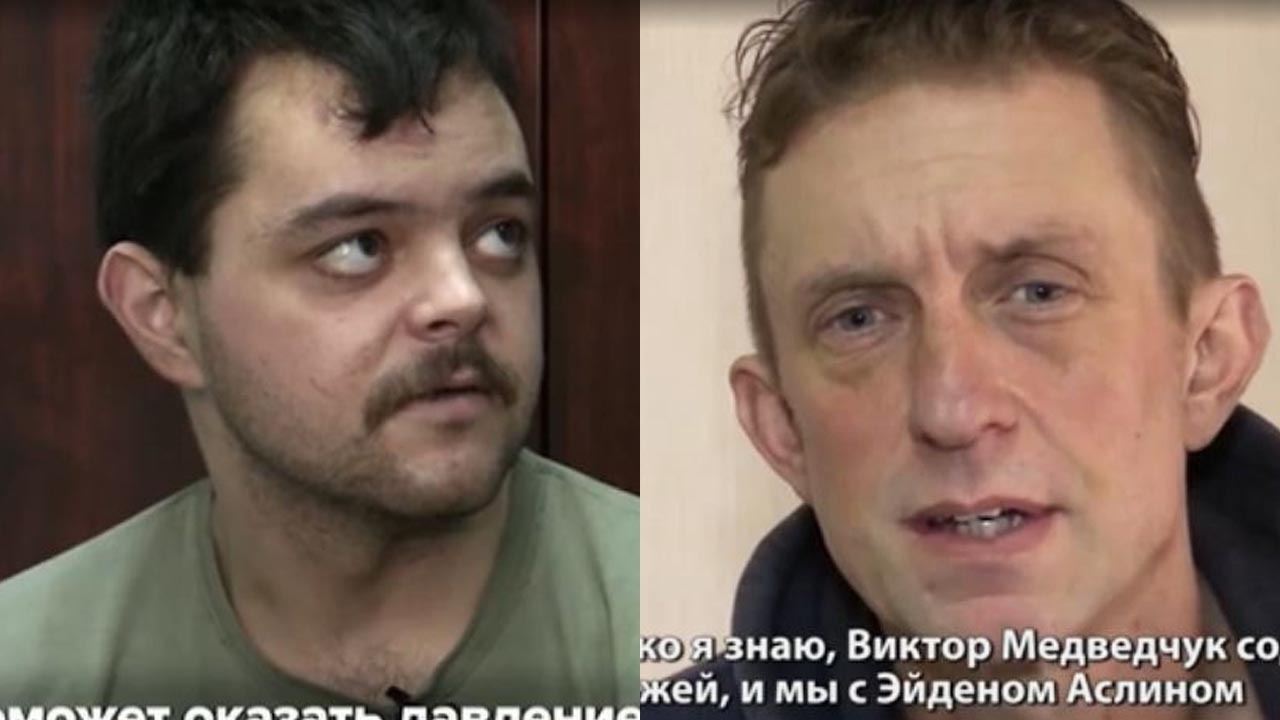 Les deux hommes, qui apparaissent les traits tirés, demandent à être échangés contre Viktor Medvedtchouk, un riche homme d'affaire ukrainien proche de Vladimir Poutine arrêté en Ukraine. Ils ne précisent pas qui les détient actuellement, les forces russes ou alors leurs alliés séparatistes du Donetsk, dans l'est de l'Ukraine.