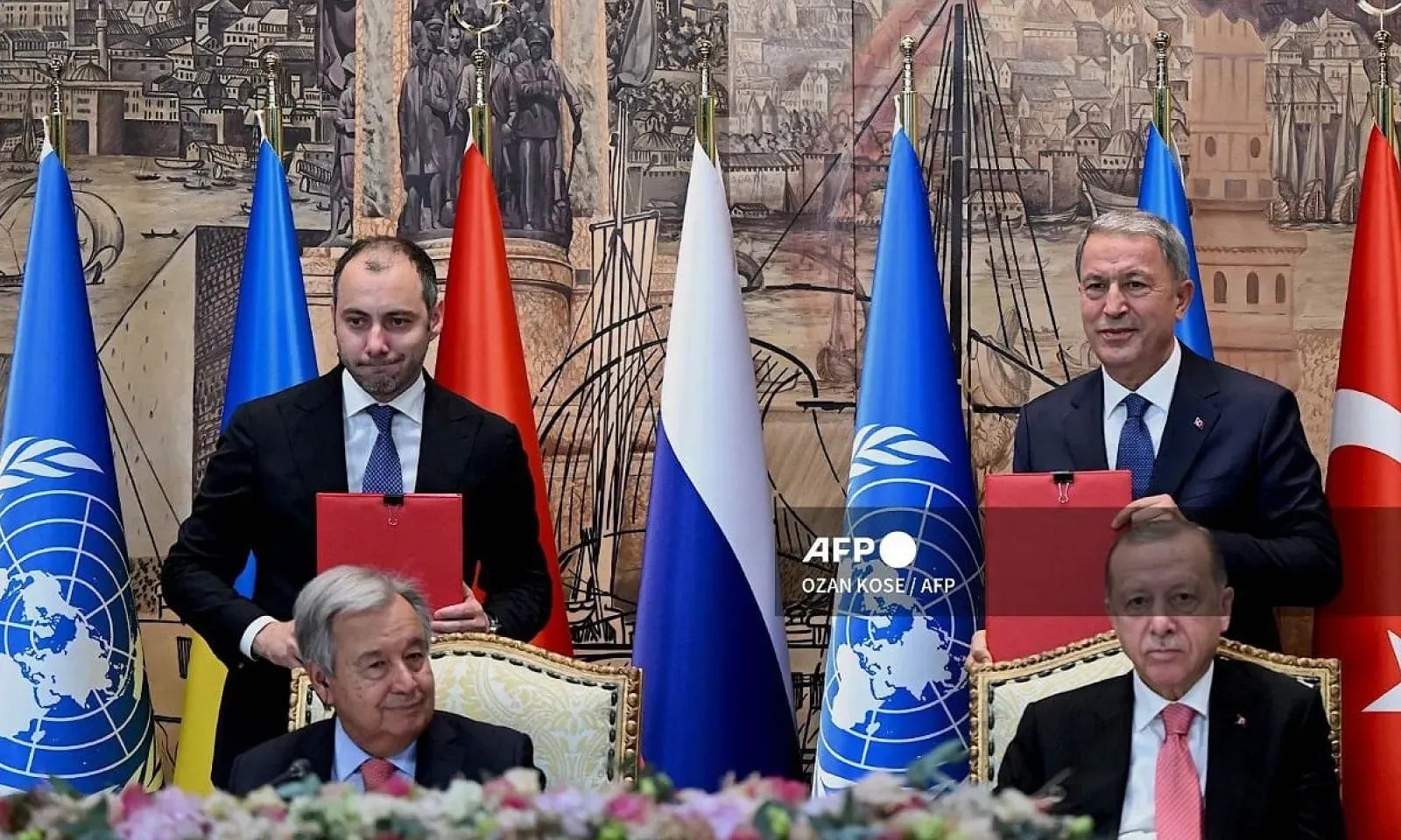 À quelques heures de la cérémonie, l'Ukraine a précisé qu'elle ne signerait "aucun document avec la Russie", mais uniquement avec la Turquie et l'ONU. Les Russes ont paraphé de leur côté un accord identique avec ces deux parties. M. Guterres a toutefois relevé le caractère "sans précédent" de cet accord conclu entre deux pays en guerre.