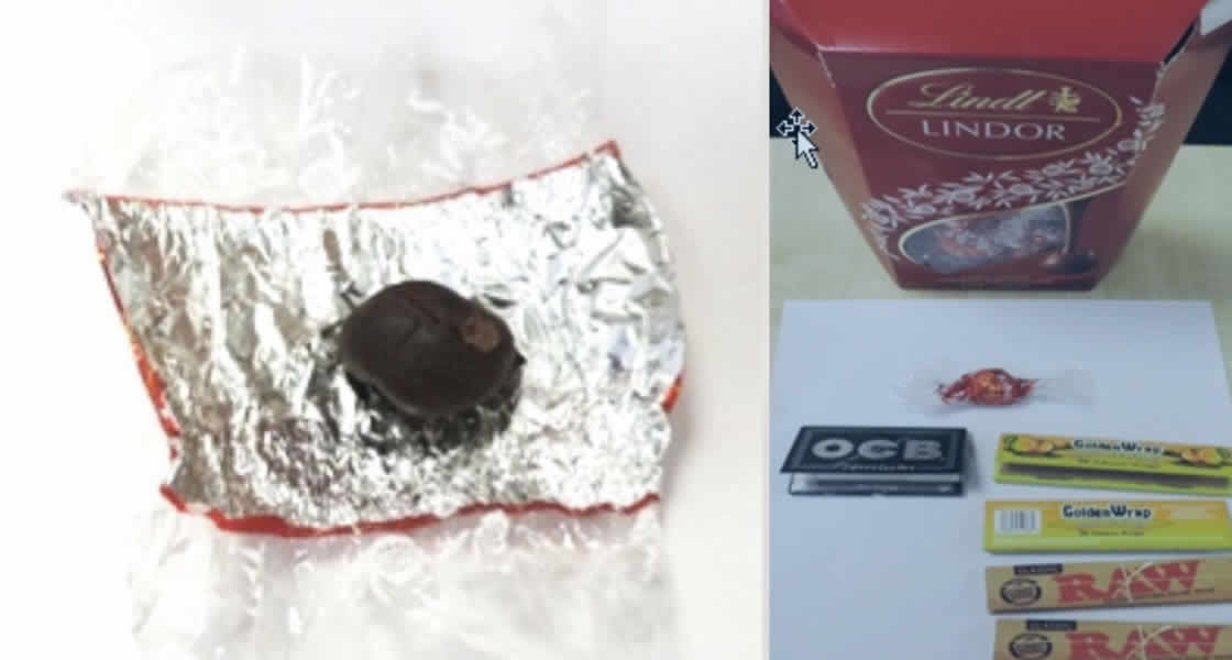 Le jeune homme est arrivé de Suisse via Dubaï à bord du vol EK 0703 et il a été interrogé en sortant du «Green Channel». Après vérification de ses bagages, une matière brunâtre a été retrouvée cachée dans une boîte de chocolats, ainsi que cinq paquets de papier à rouler.