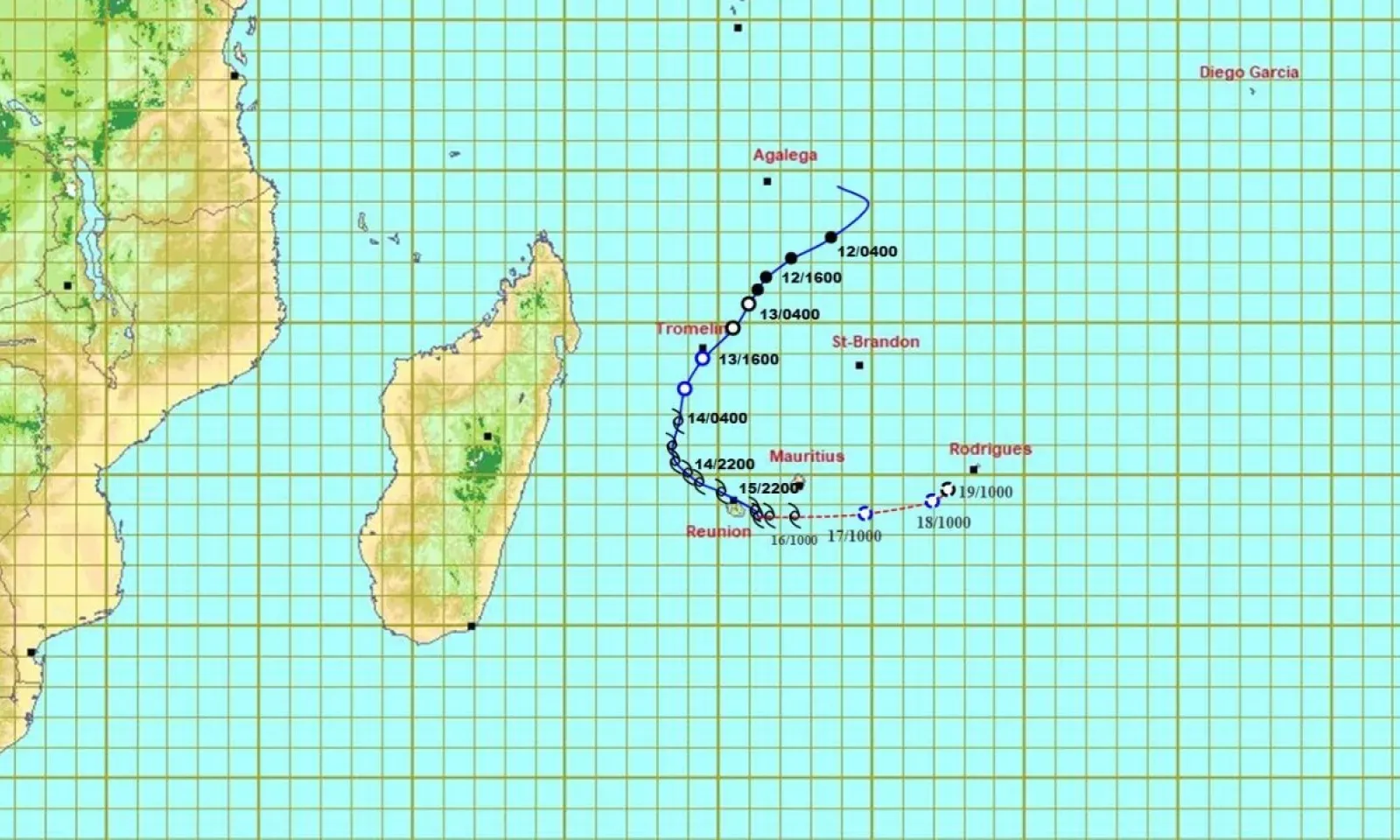 « À 04 h, la forte tempête tropicale Belal était centrée à environ 90 km au sud de Souillac, soit autour du point 21.5 degrés sud en latitude et de 57.5 degrés est en longitude. Elle est en train de passer à son point le plus rapproché des côtes sud de Maurice et se déplace dans une direction générale de l'est à une vitesse d'environ 15 km/h. Des conditions cycloniques persistent sur l'île avec des rafales supérieures à 120 km/h », indique le service météorologique.