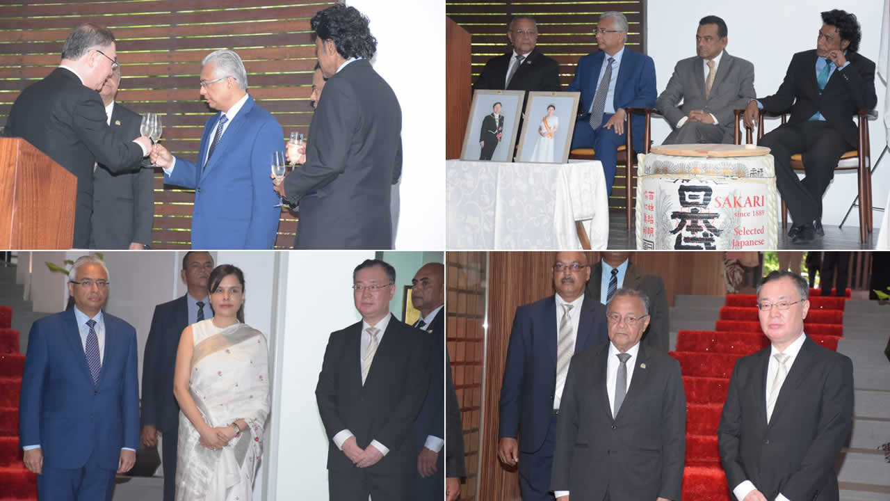 L’ambassadeur du Japon, Kato Yoshiharu, a organisé une réception à sa résidence à Floréal, jeudi, pour marquer les 60 ans de l’empereur du Japon, Naruhito. Parmi les invités, se trouvaient le vice-Président de la République, Eddy Boissezon, le Premier ministre (PM), Pravind Jugnauth, le vice-Premier ministre, Ivan Collendavelloo, et le ministre des Affaires étrangères, Nando Bodha. Kato Yoshiharu a réaffirmé « la volonté du Japon de renforcer ses relations avec Maurice à travers son ambassade.»