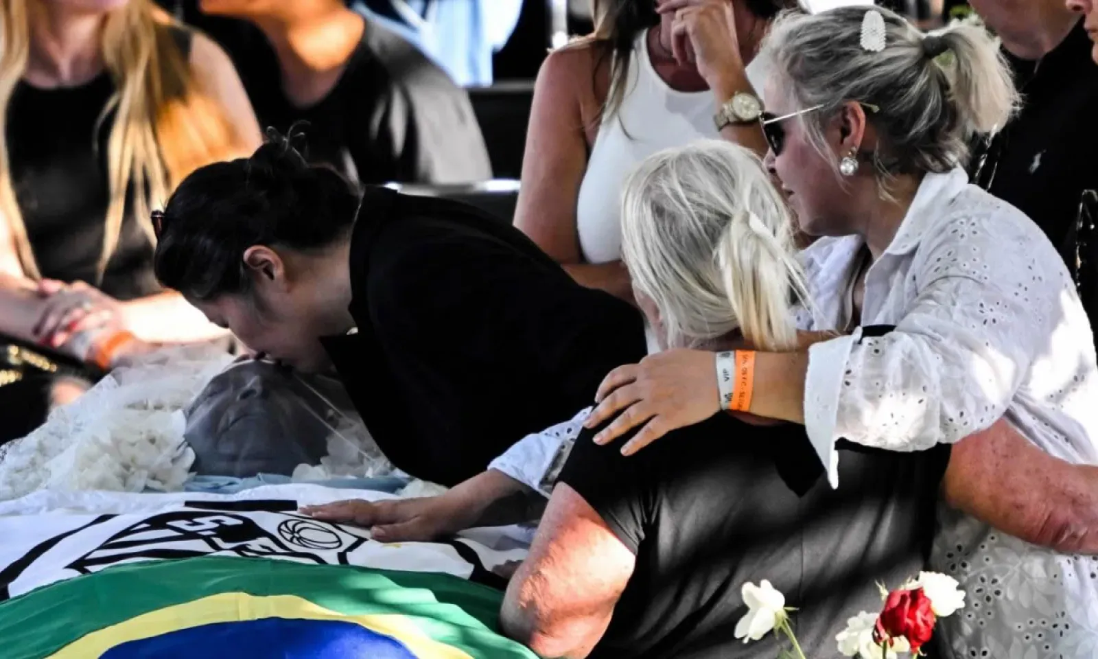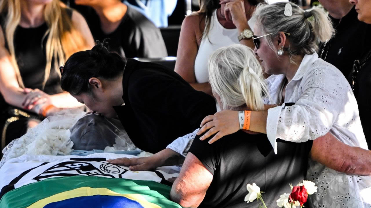 Elle a également placé un chapelet dans son cercueil drapé des drapeaux du FC Santos et du Brésil.